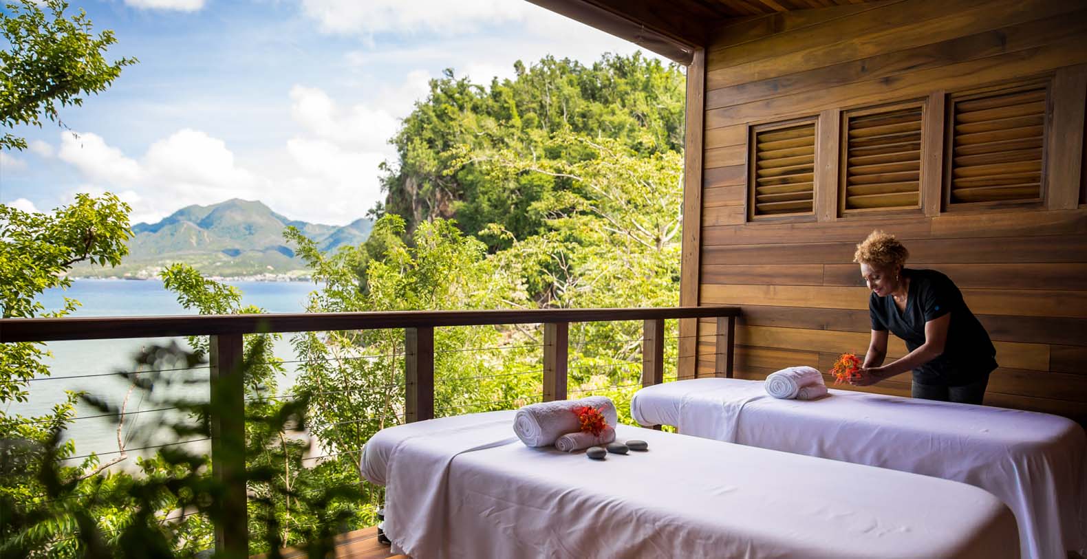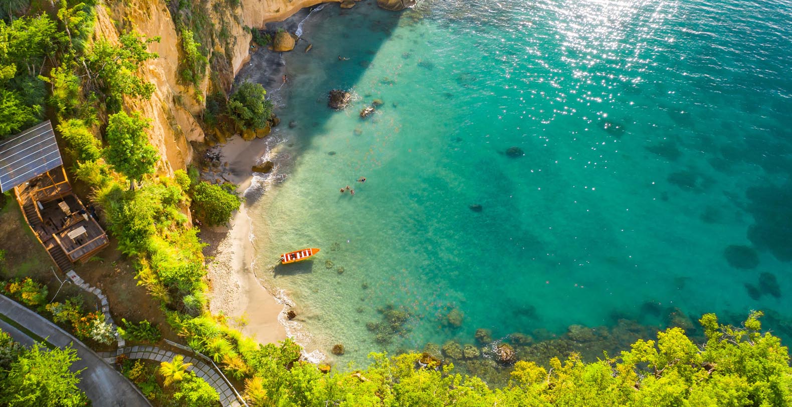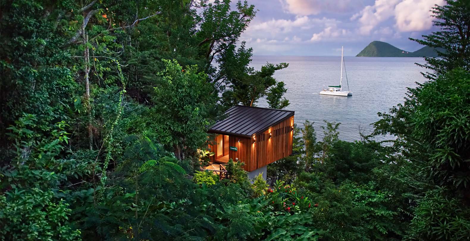 The luxurious Zabuco Villas feature breathtaking 180-degree views over the mountain peaks of Dominica and the sparkling Caribbean Sea. With a sense of floating in the air, overlooking Secret Beach, our paradisiacal white-sand escape accessible by a quick swim, kayak or paddle board, and surrounded by lush foliage and gardens these villas are for guests who want the feel of their very own secluded villa combined with discreet yet personalized six-star service. Zabuco is another name for the Bwa Bande tree, renowned in Dominica for its aphrodisiac qualities.