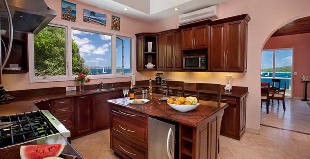 The fully equipped granite and mahogany kitchen has a six burner duel-fuel range, French door refrigerator, additional icemaker, dishwasher and microwave all built around a central island. A chef's dream and it has a 'dream chef' as well, available by reservation for your convenience. Cabrita Cliff Haus also has a gated driveway, two car garages and its own generator.