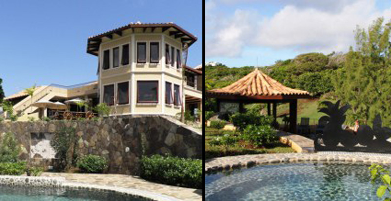 Strategically located on a private hilltop, this Portuguese inspired architectural residence offers panoramic views of the Atlantic Ocean and Caribbean Sea.