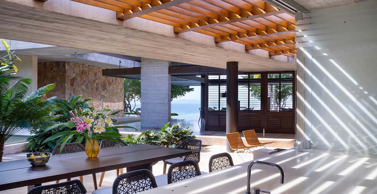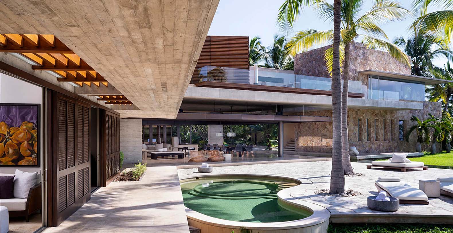 Rancho R&R is an exquisite beachfront home nestled on 1.7 acres in the ultra-private Ranchos community of Punta Mita and is indeed a masterpiece. Perfectly conceived over 5 years, owners and architects worked together meticulously to ensure no detail was overlooked. The architectural craftsman for R&R are none other than internationally renowned Mexican architects Alfonso Lopez Baz and Javier Calleja. Both architects put their heart and soul into this home. The resulting award-winning “X-shaped” design is a modern masterwork and one of the most aesthetically beautiful homes you will ever see. Indoors and outdoors blend seamlessly with the design amplifying the 206 feet of beachfront and accentuating the panoramic ocean views from every corner of the property. The wonder and genius of Lopez Baz’s and Calleja’s “X-shaped” design is that you can enjoy these expansive views with ultimate privacy.