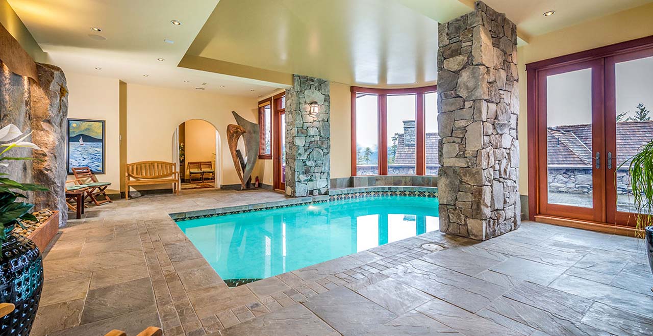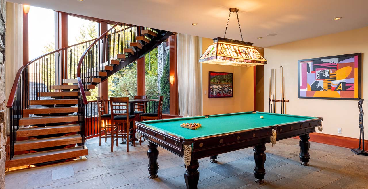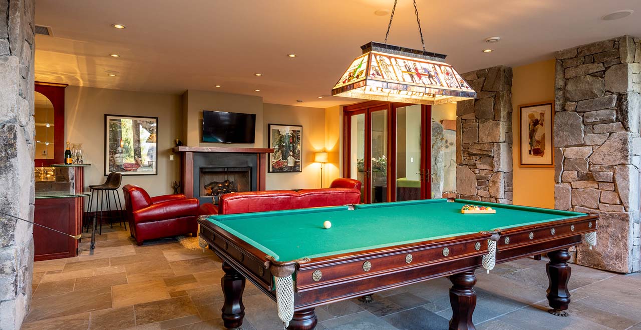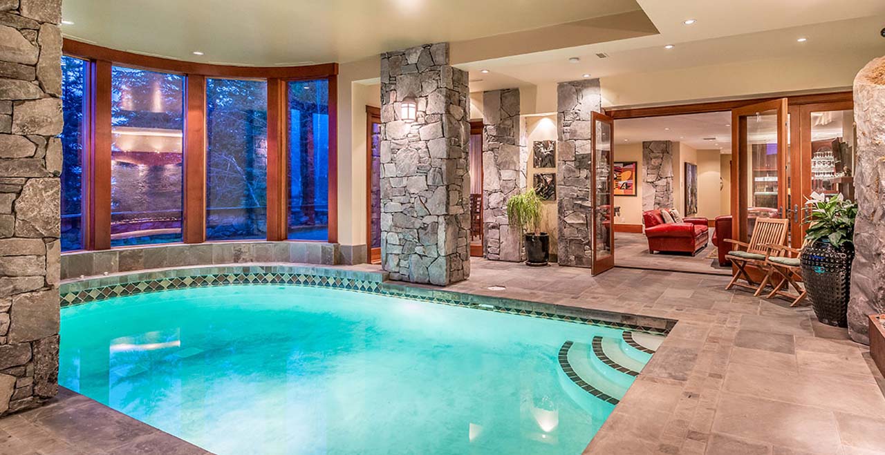 Ground Floor (Pool Level): Entertainment area with full bar/kitchen, 4’x8’ billiards table, 42” flat screen, gas fireplace. Opens to a gorgeous indoor 15’x30’ resistance pool with waterfall, full bath and steam shower plus outdoor hot tub on large deck. 3 bedrooms with 1 king and 2 queens, all with full en-suite baths plus half bath.