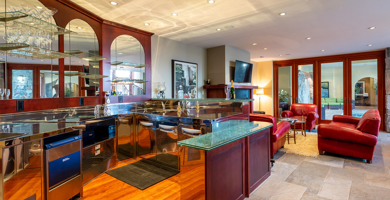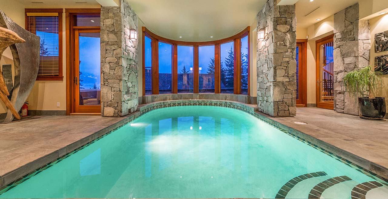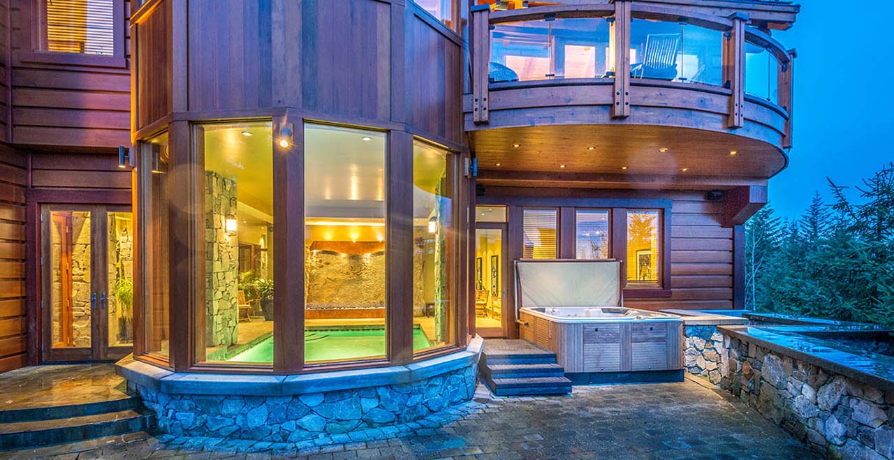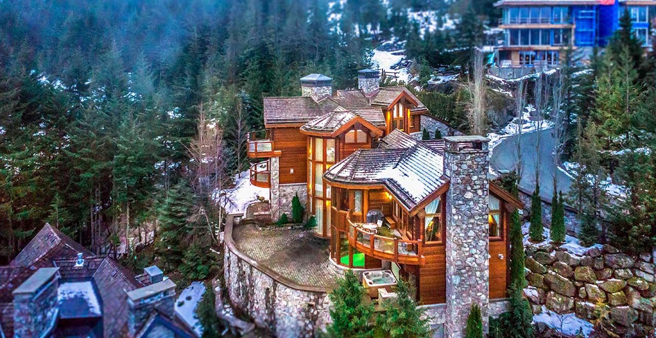Spectacular executive home located on the side of Whistler Mountain. Breathtaking panoramic south-west views showcase the surrounding mountain peaks and valley lakes. This superior quality home features huge cedar beams, natural rock, slate & tile, and extensive woodworking. Top quality furnishings and appliances complete this plush and spacious mountain home retreat. With a billiard room, indoor resistance pool, steam room & outdoor hot tub, this slope-side home will pamper you during your Whistler visit. 8000 square feet of luxury on 4-levels. In-floor heating throughout.
