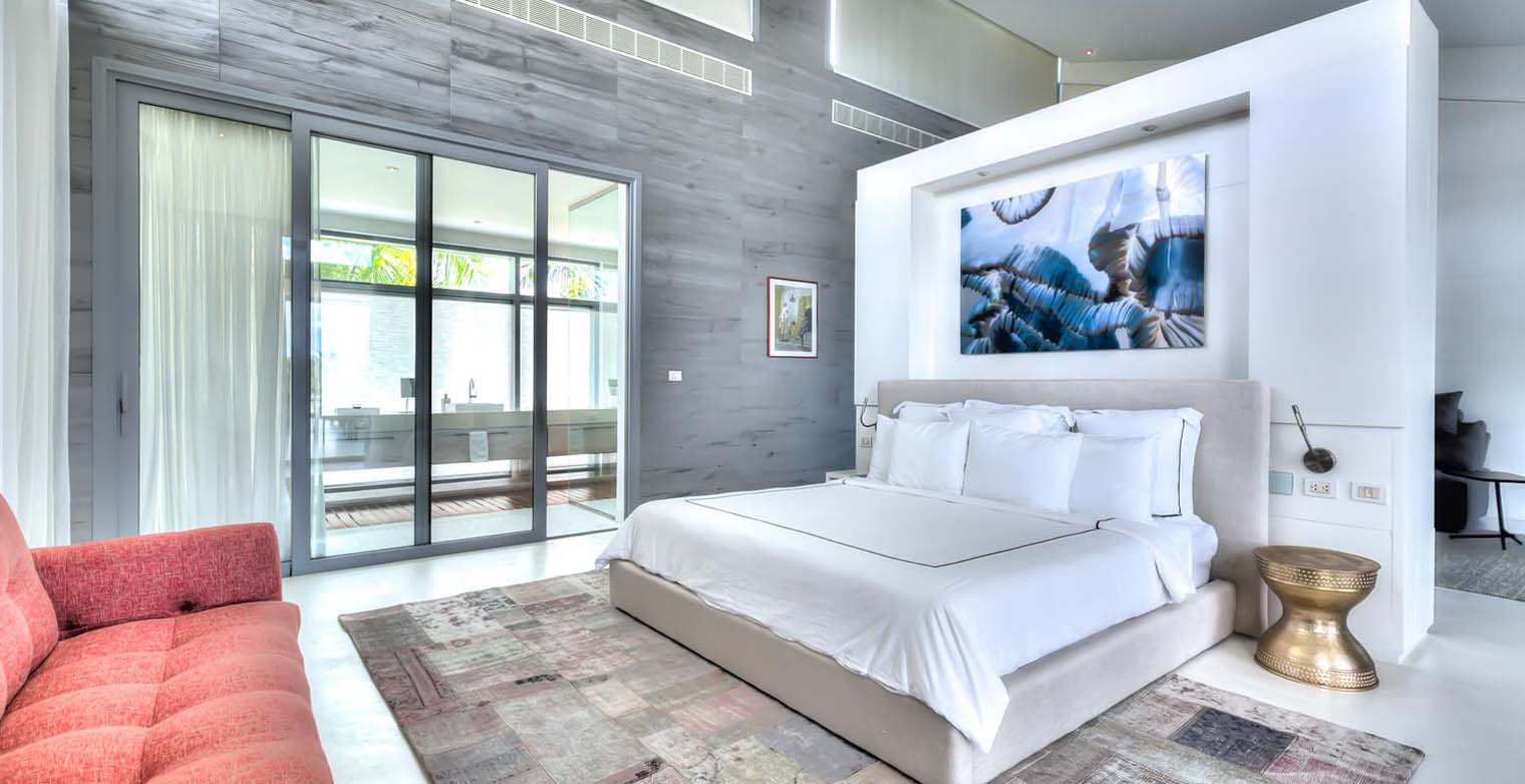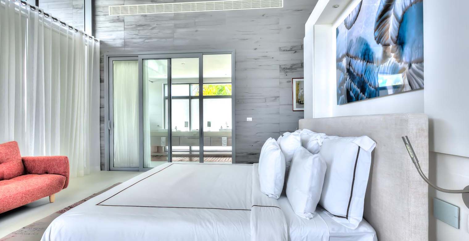 Bedrooms are not alien from the exquisite taste, where art is everywhere. All bedrooms have a king bed, walk-in closet, and en-suite bathroom. 4 are on the second floor and the last bedroom is located on the ground floor. Three of them are suites with a lounge area including a sofa bed each.