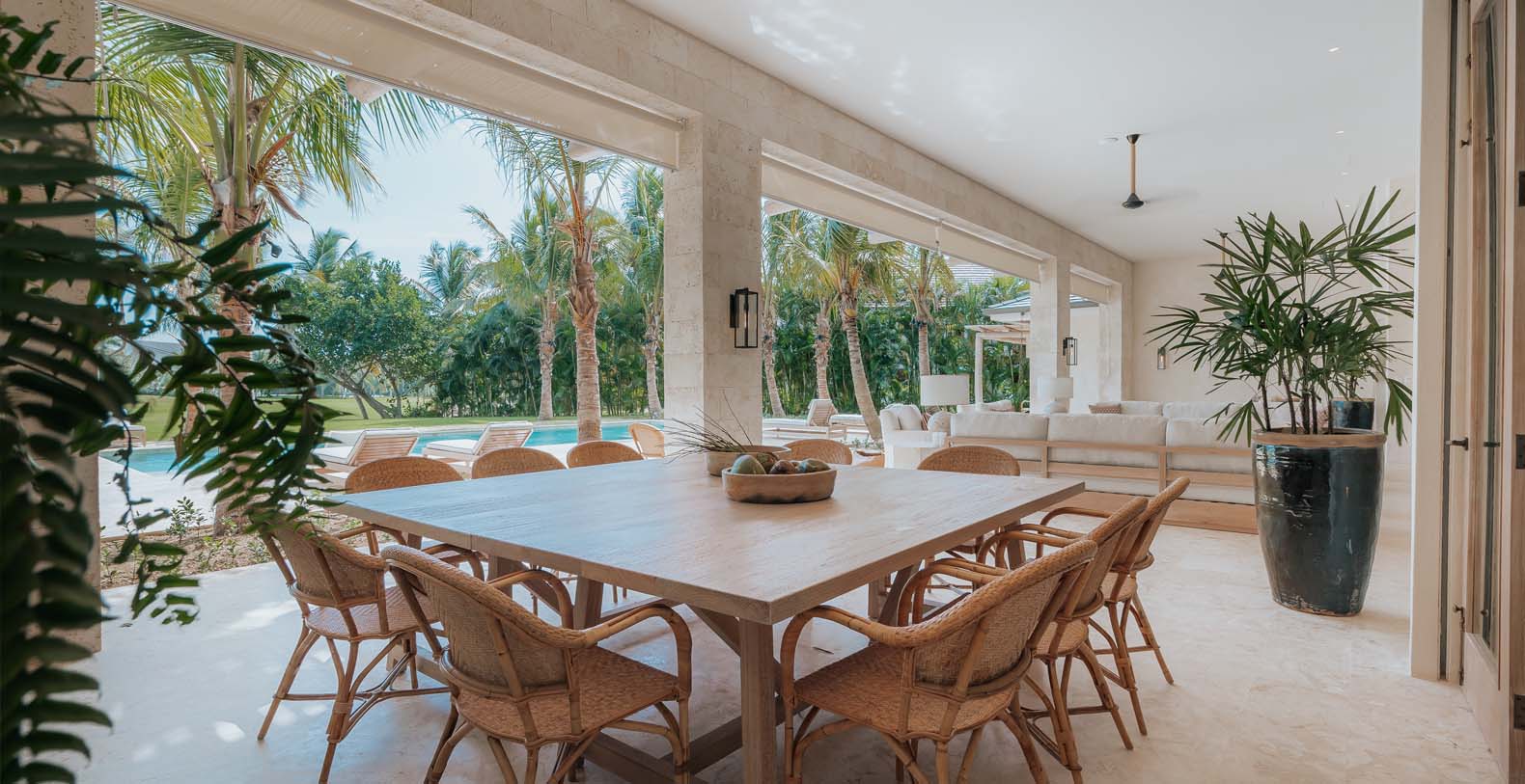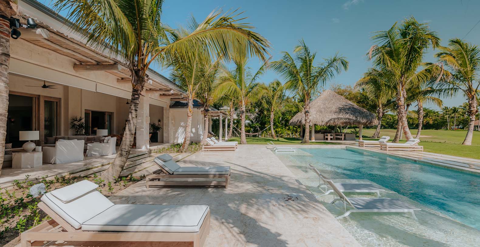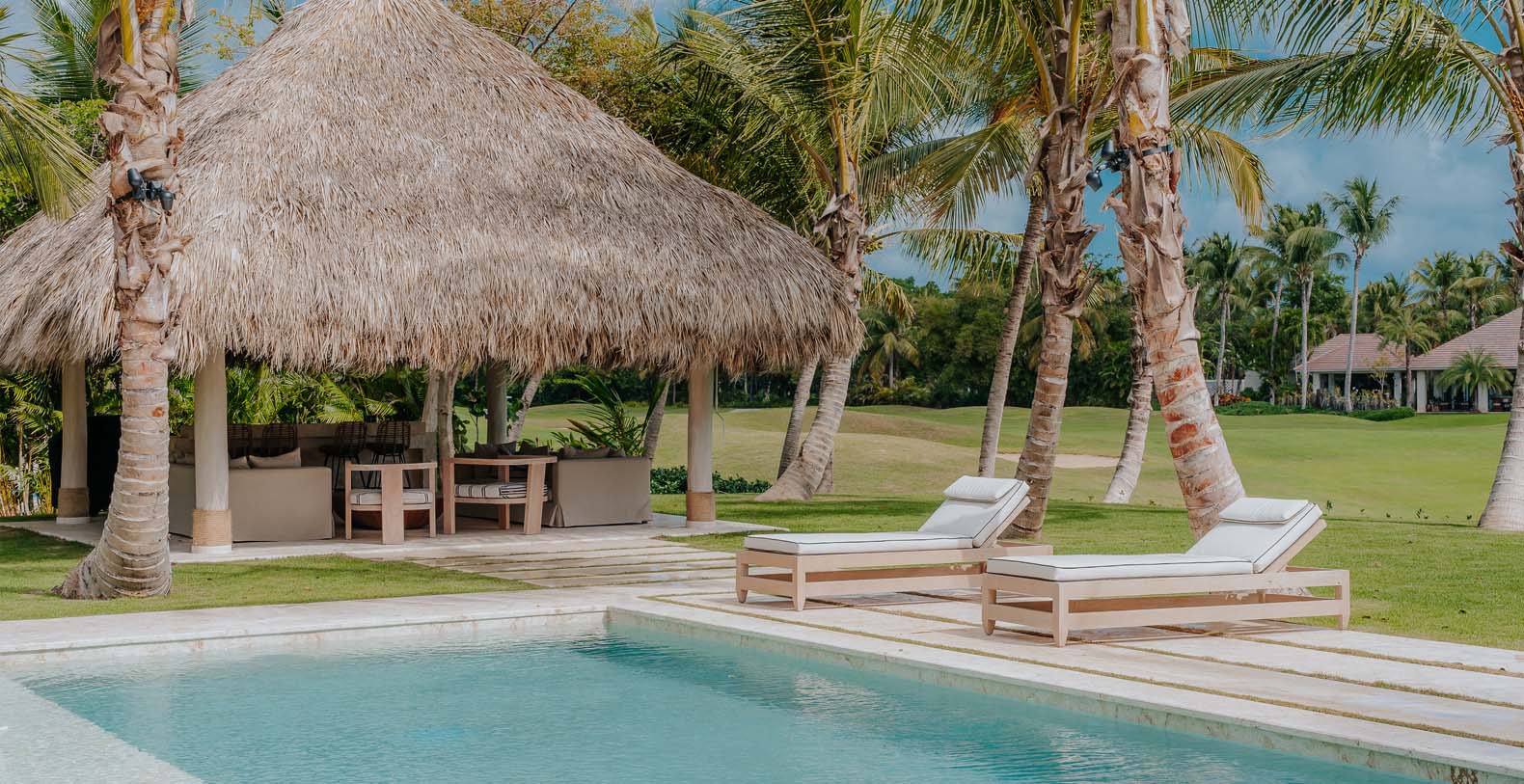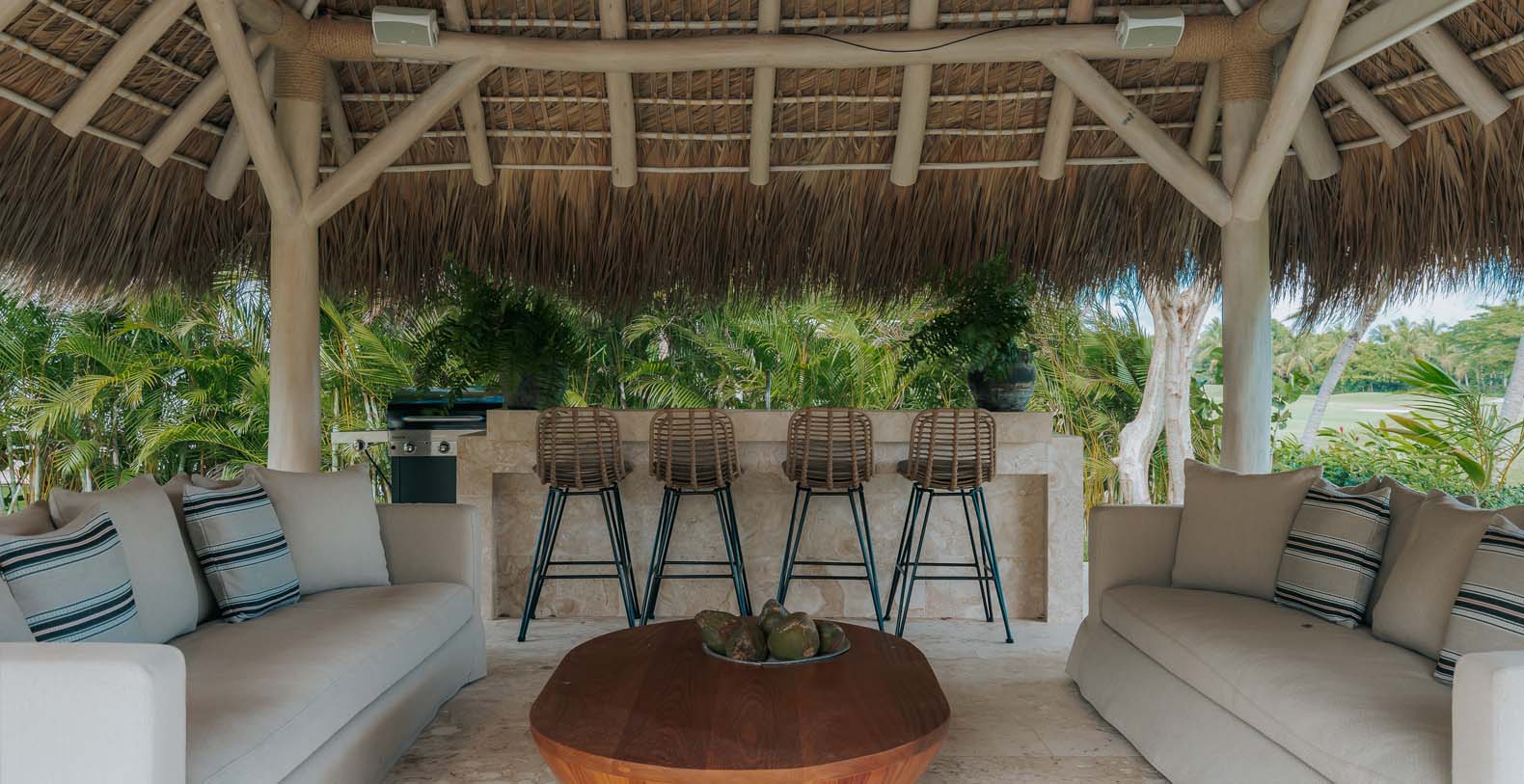 Outdoor is an amazing and large common space, to spend all day with your beloved ones, from plunging into the private pool to cool off after a nice beach day, to have a lovely dinner on the alfresco dining or maybe seat down under the palapa to talk about the unique holidays you are having with your friends or enjoy the wide golf views in silence.