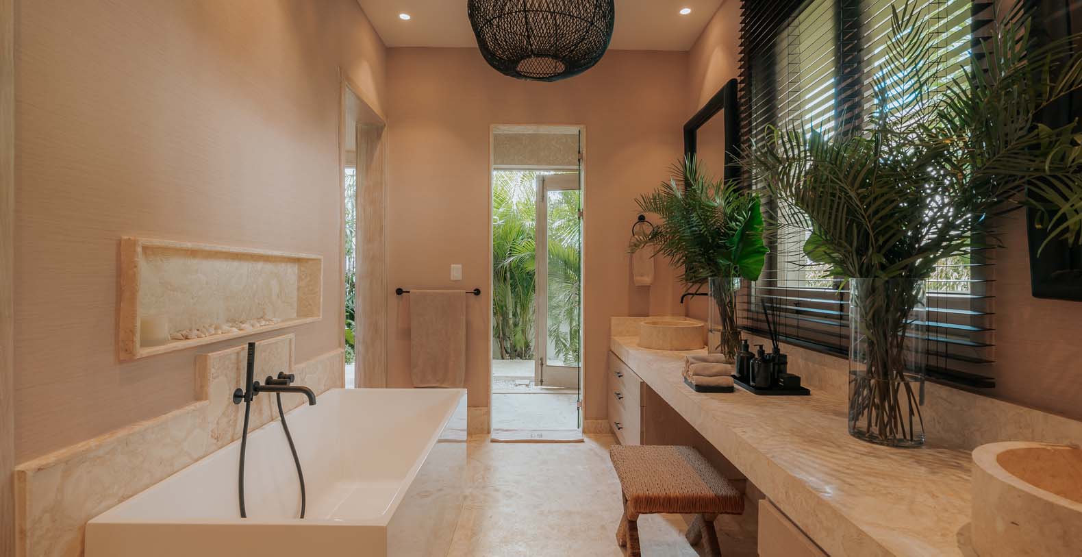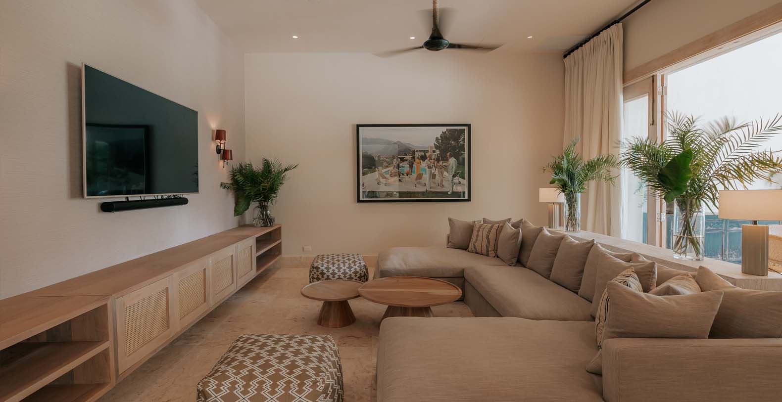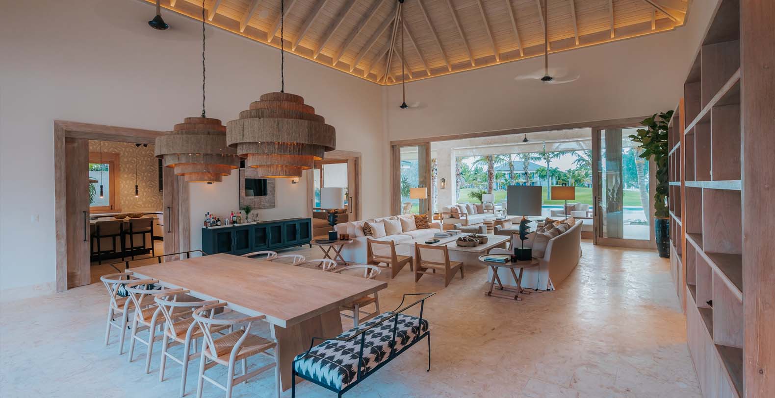 Outdoor is an amazing and large common space, to spend all day with your beloved ones, from plunging into the private pool to cool off after a nice beach day, to have a lovely dinner on the alfresco dining or maybe seat down under the palapa to talk about the unique holidays you are having with your friends or enjoy the wide golf views in silence.