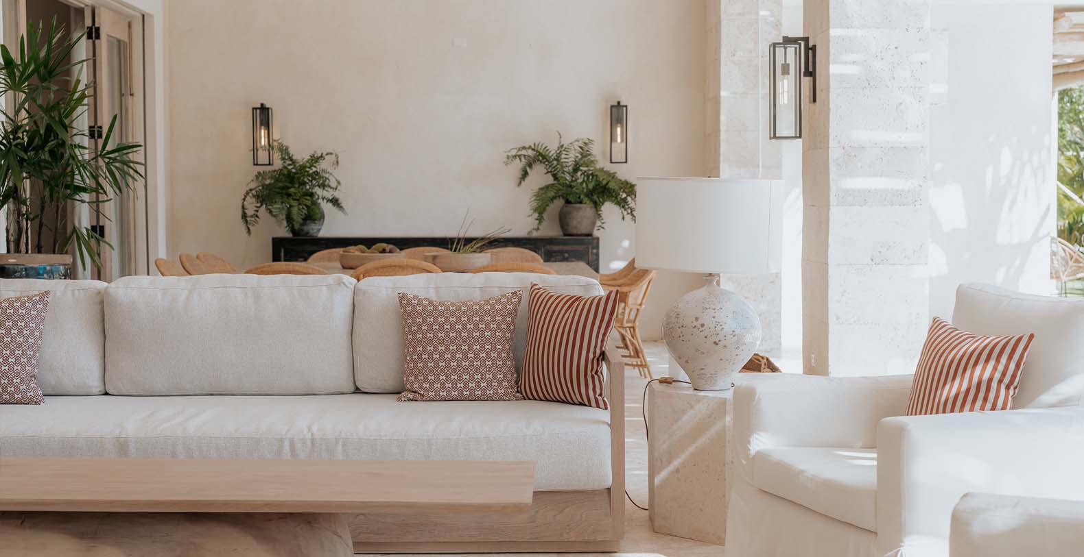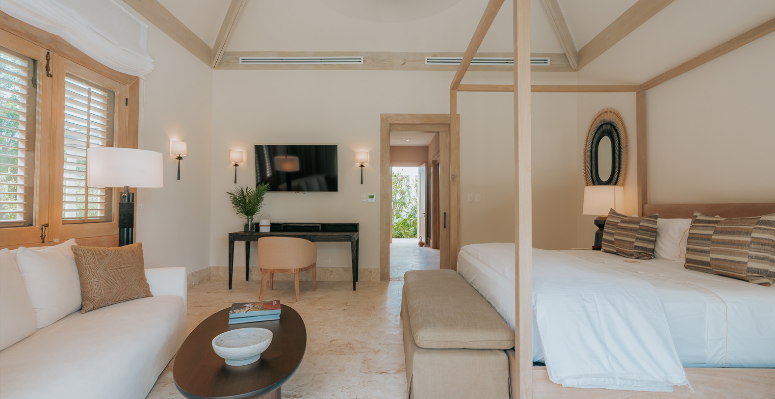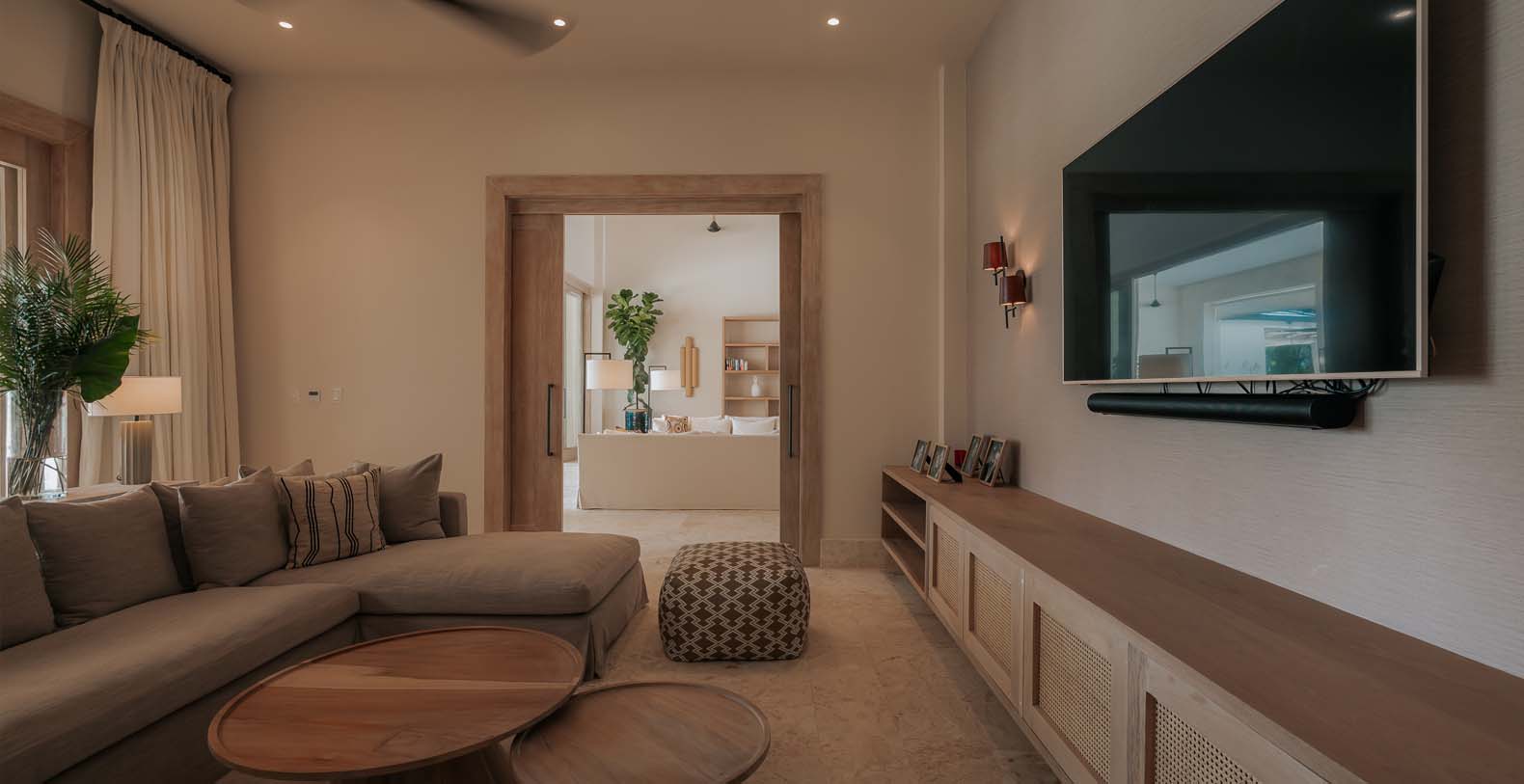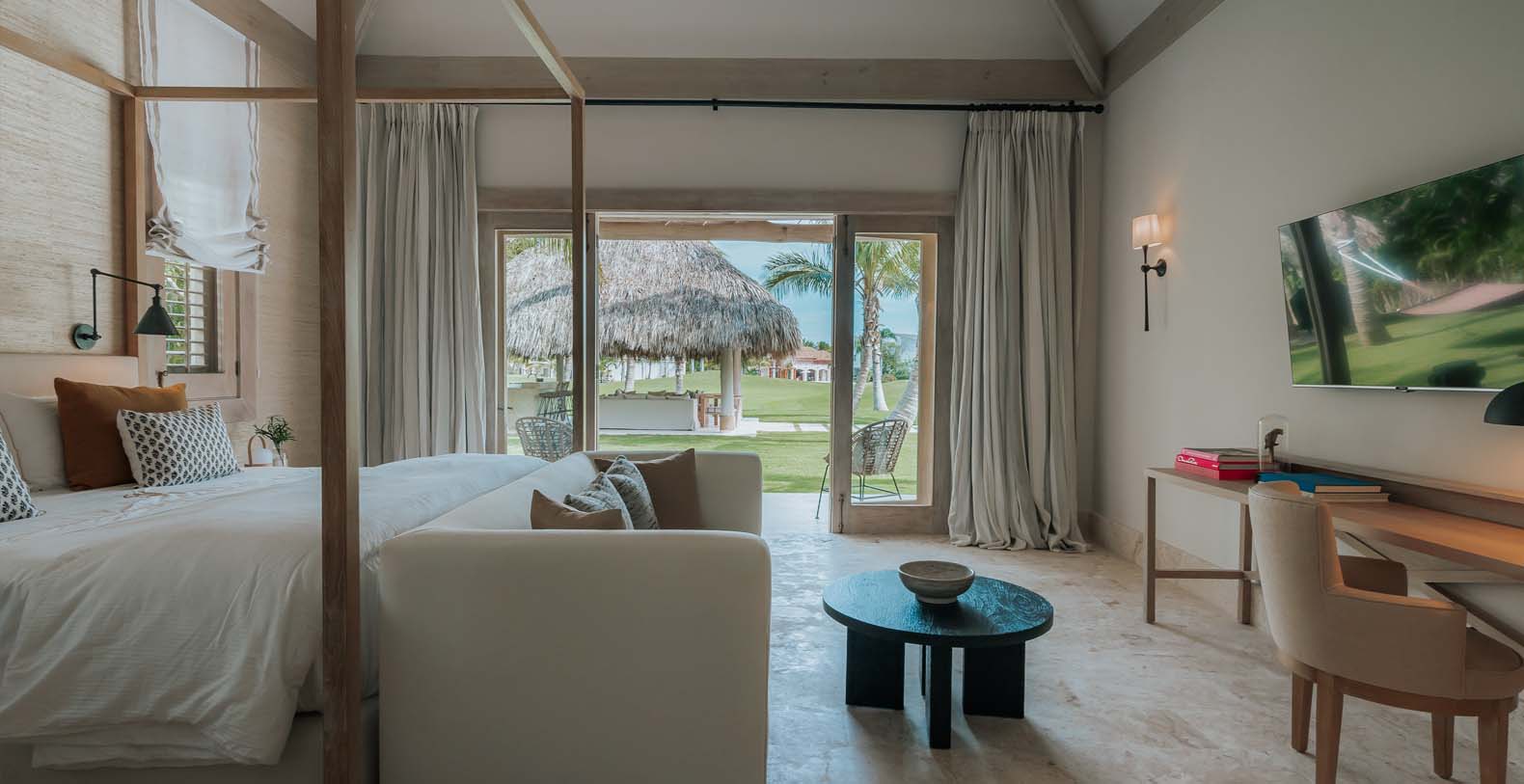 Outdoor is an amazing and large common space, to spend all day with your beloved ones, from plunging into the private pool to cool off after a nice beach day, to have a lovely dinner on the alfresco dining or maybe seat down under the palapa to talk about the unique holidays you are having with your friends or enjoy the wide golf views in silence.