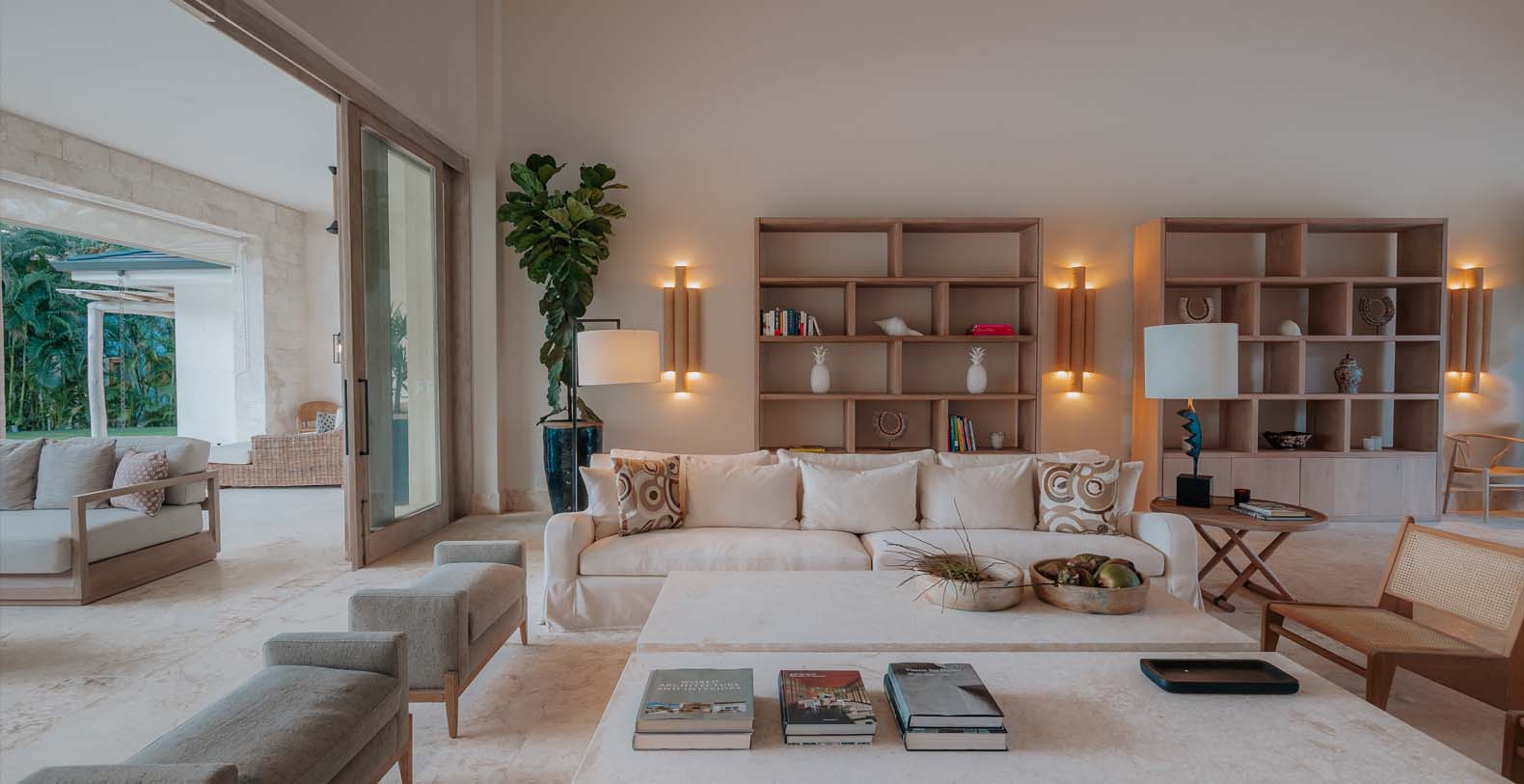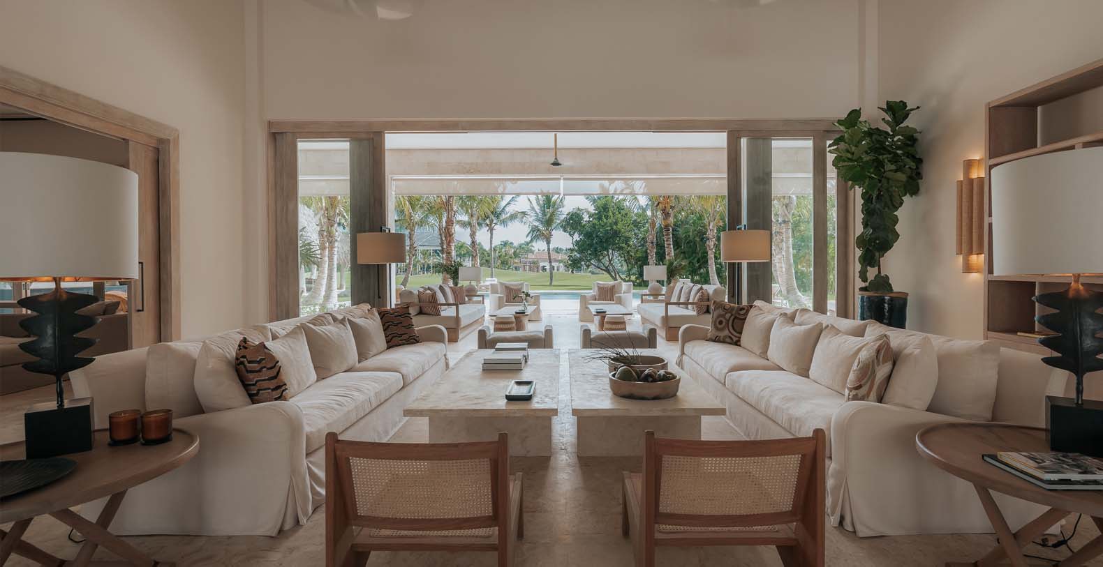 Step into this newly built luxury villa, designed and decorated by a recognized Spanish designer, discover a sober and avant-garde space with minimal and tropical details specifically chosen to make each guests stay as memorable as possible. Indulge yourself and enjoy all the perks of its large living room with a variety nouveau furniture mixed with traditional Caribbean style, which has access to a beautiful evergreen private garden with unique golf course views.