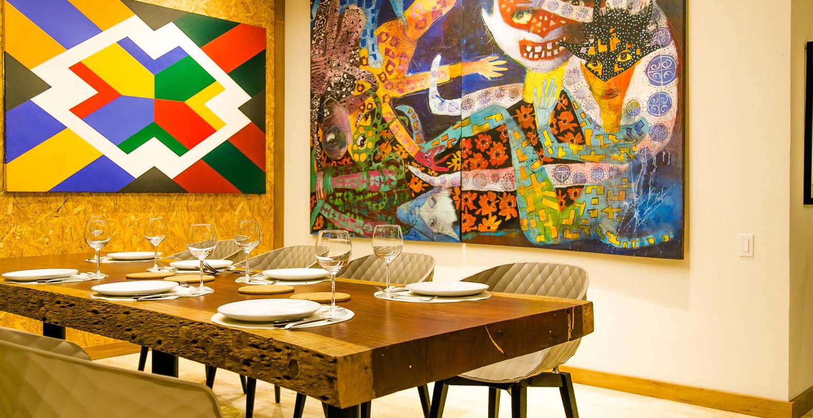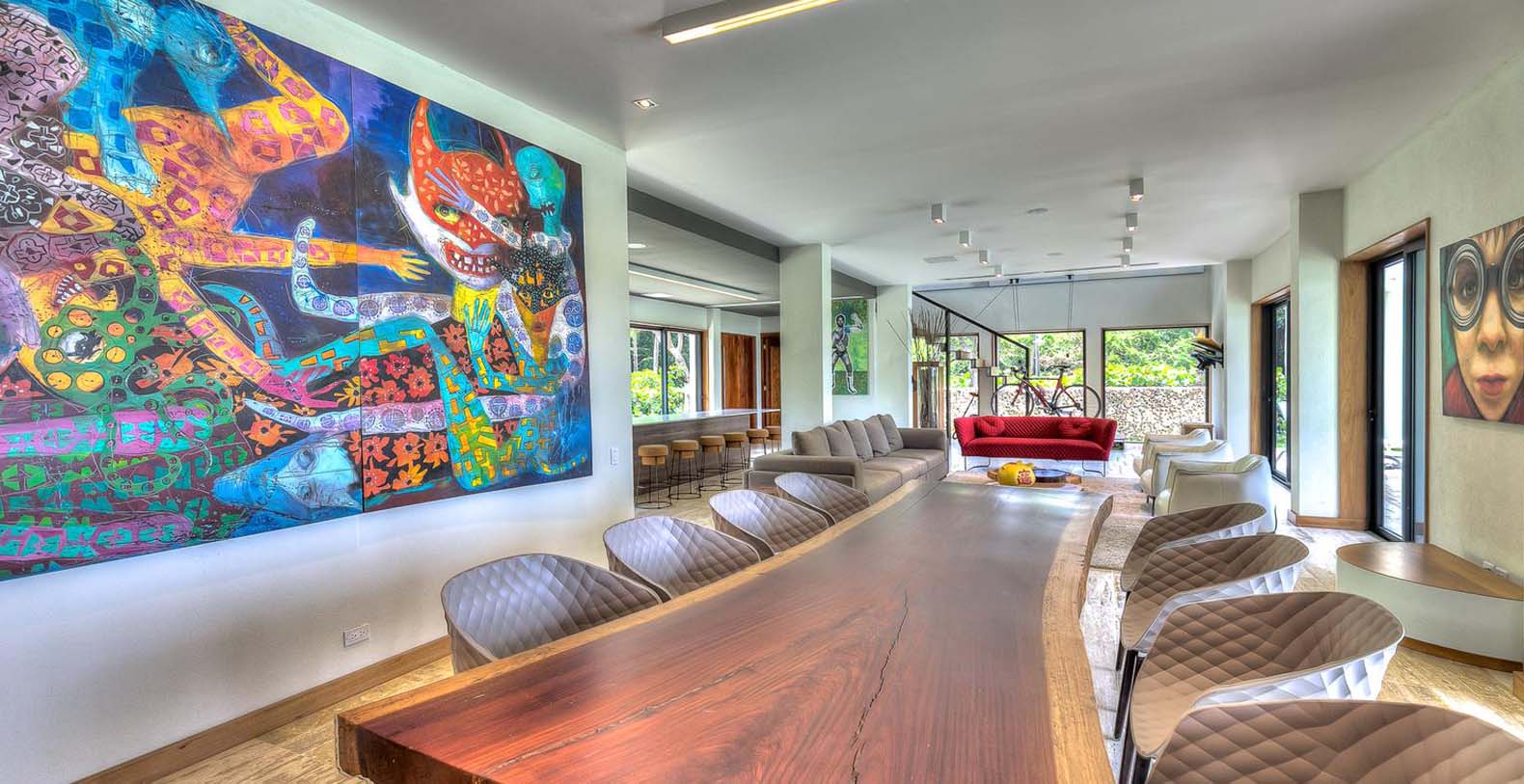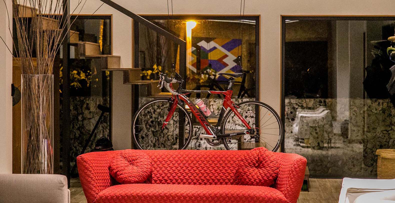 Garnished with a unique, minimalistic, modern and pop art design it resembles the new decorative wave in Malibu and Beverly Hills, giving an atmosphere of warmth and coolness at the same time. You don't want to miss the particular bike hanging from the ceiling and the strident and colorful paintings all over the place.