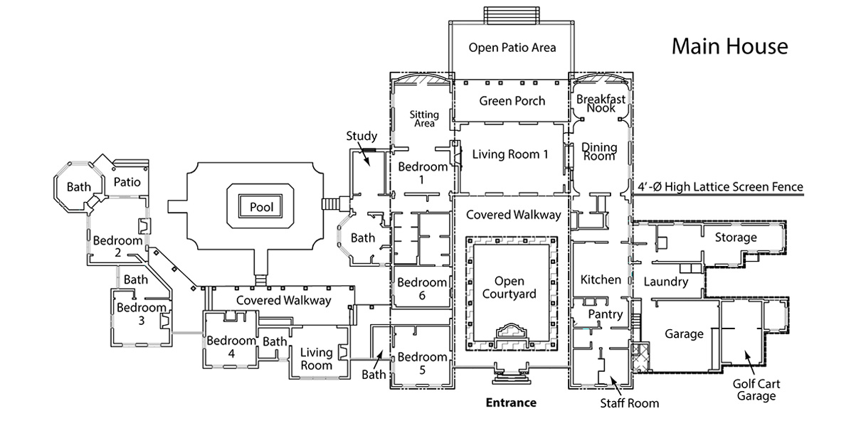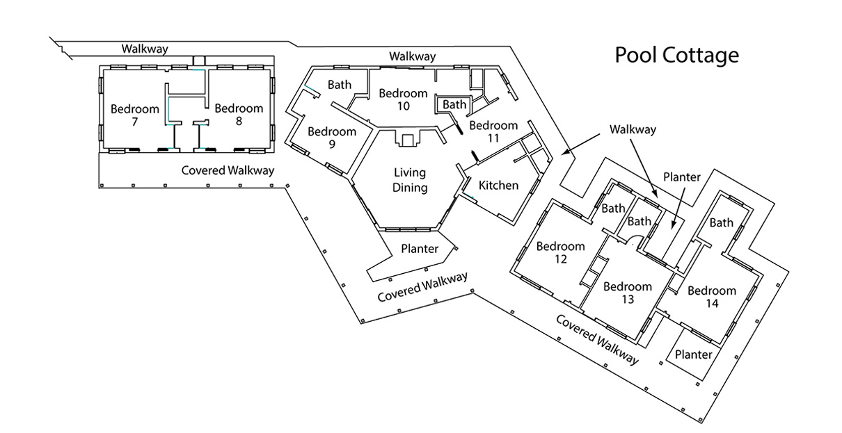 The pool cottages, next to the pool and ocean, have eight private rooms, each with its own bathroom. More tropical in style then the main house, the pool cottages have a well equipped kitchen, family room with cable TV, games, fireplace, ceiling fans, wireless internet, out-door dining (on a covered porch) and an out-door shower. This is a traditional and beautiful Bahamian home, you will not want for anything more.