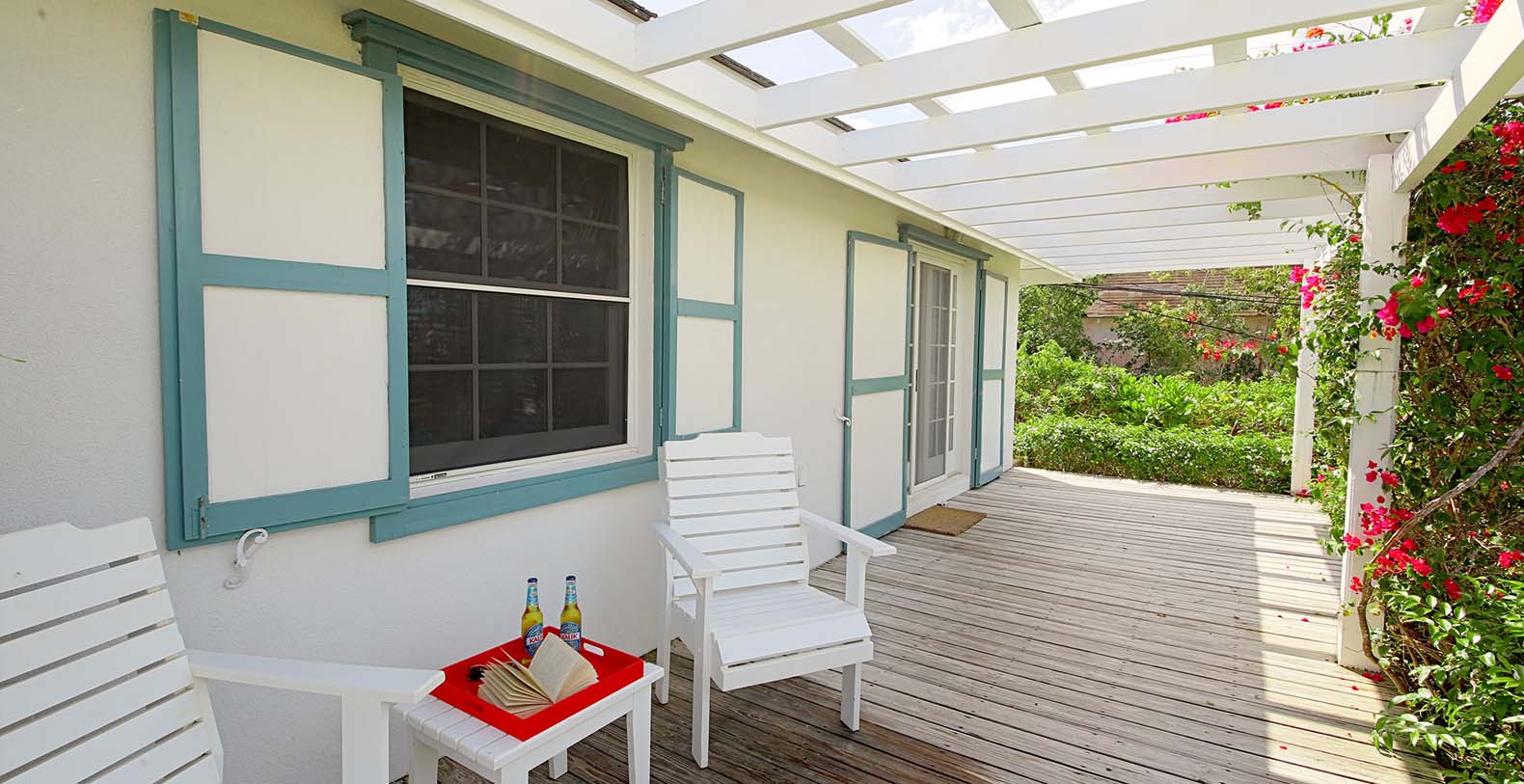 Finish off the day with an ice-cold beer, or glass of wine, while relaxing on the outdoor patio, or by the pool, which is shared between guests of the three properties.
