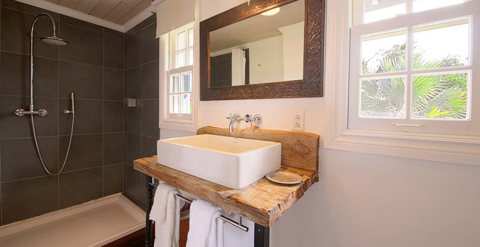 Belmont Cottage is a beautifully restored and appointed 19th century cottage, located on a hillside overlooking the settlement of Governors Harbour and Cupids Cay.The cottage provides a studio style living and bedroom area, equipped with a king-size bed and adjacent living area. The recently modernised bathroom features an extra-large walk-in shower with rainfall shower head.