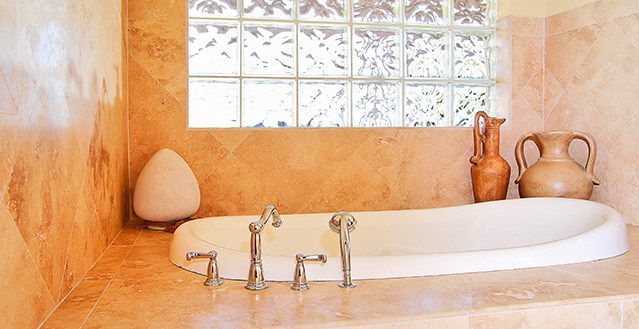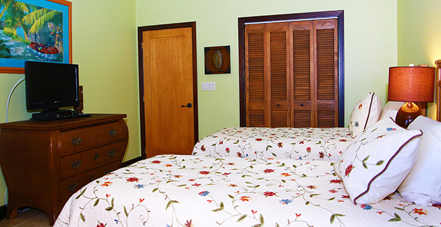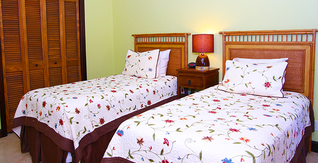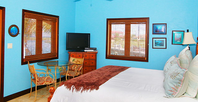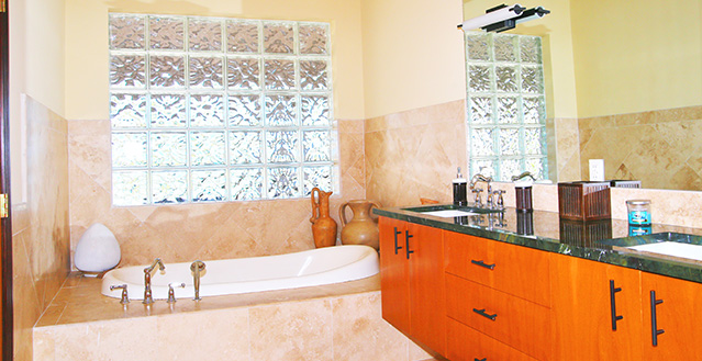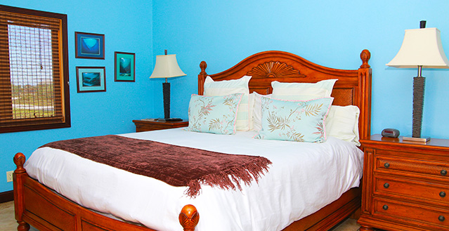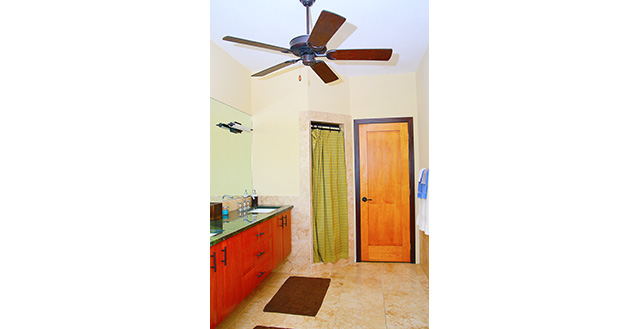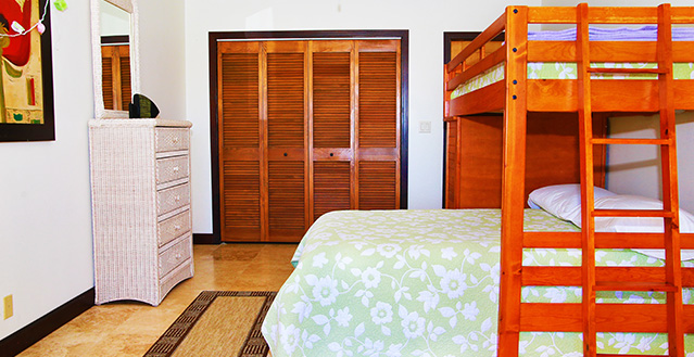 The bedrooms are all in the Best of Caribbean Flair. You have a Master with King bed and en-suite bath, lovely large soaking tub and travertines and granites complete this great en-suite. The Guest Suites include Two Queen Rooms, One room with 2 Twins and a Bunk room with Full bottom and Twin topside beds. These share 2 more lovely bathrooms designed in the same fashion, with natural stone and a modern “Resort Style” finish. The house blends the color of the rich blues of the ocean and deep coral of the sands, it’s truly a relaxing retreat.