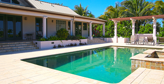 Outside of the home is where most end up spending their time, enjoying the pool or fishing off of the dock, or taking our golf cart to the nearest beaches. This is really a wonderful place, nothing like it. The pool is perfectly positioned to invite all to join as the glass windows frame it’s silhouette in the sunlight or moonlight. Out here you can also enjoy a BBQ or unwind with a glass of wine after a long day of shopping. No matter what you choose to do, you will have fun doing it.