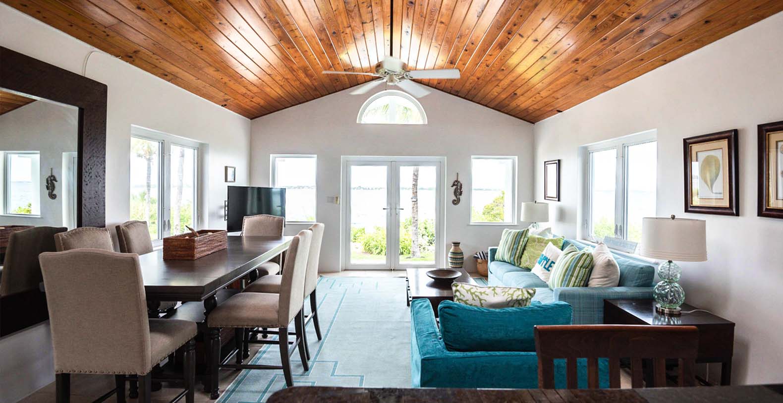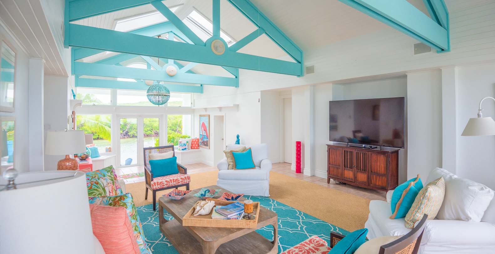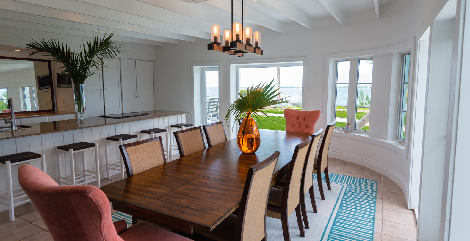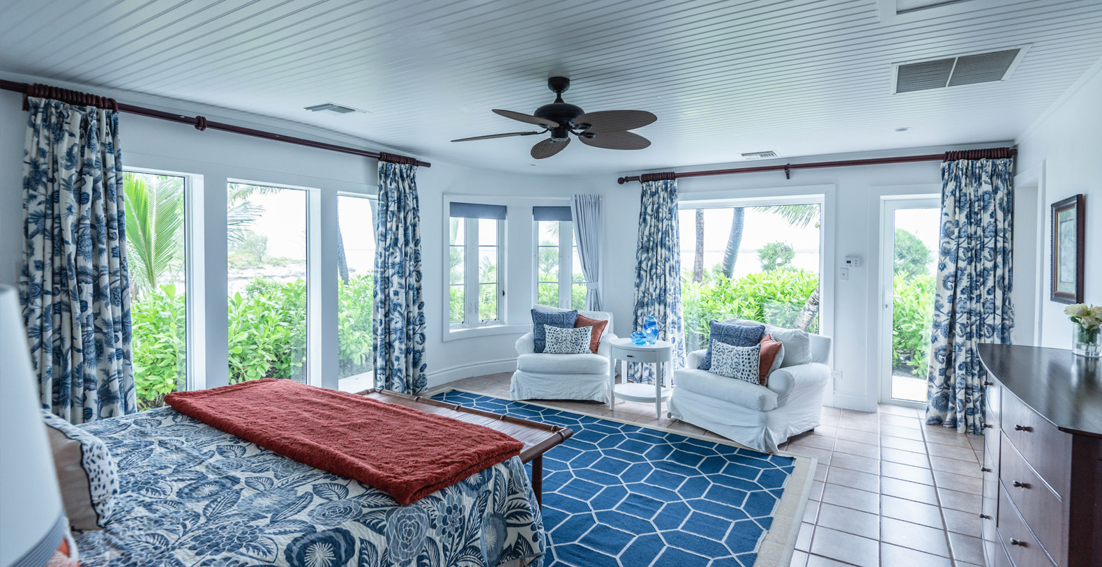 Middle Cay has two homes, and both have WiFi and air-conditioning. The Main House has an open kitchen and dining space with stainless steel appliances, granite countertops, and a dining table that seats 8. Its living room has a flatscreen cable TV and opens to a private patio. Outside, there’s a heated pool and an outdoor shower.