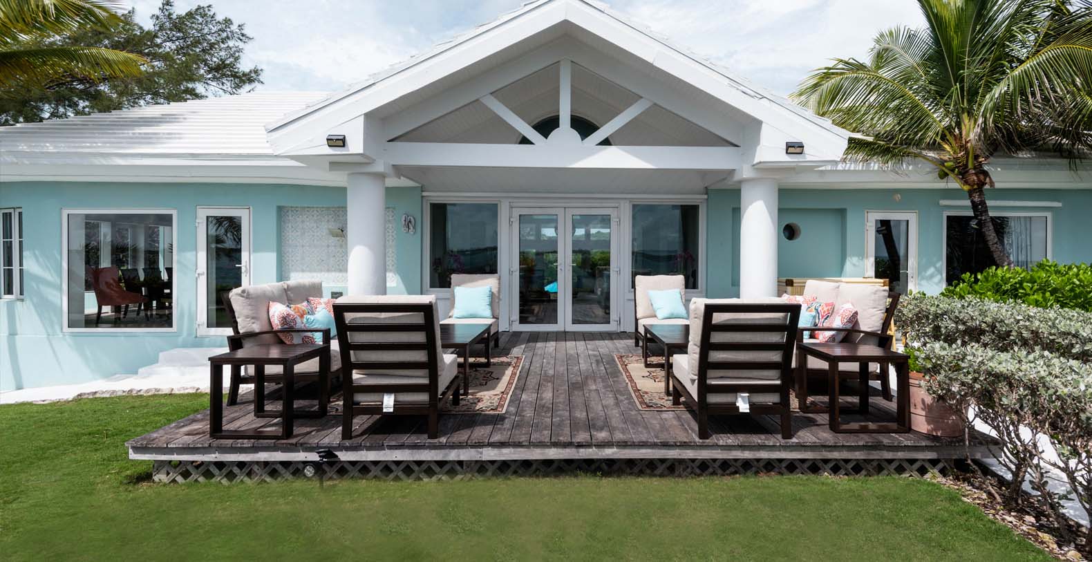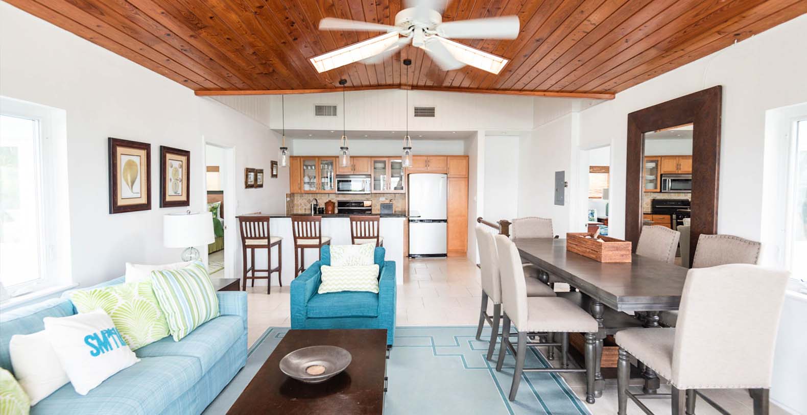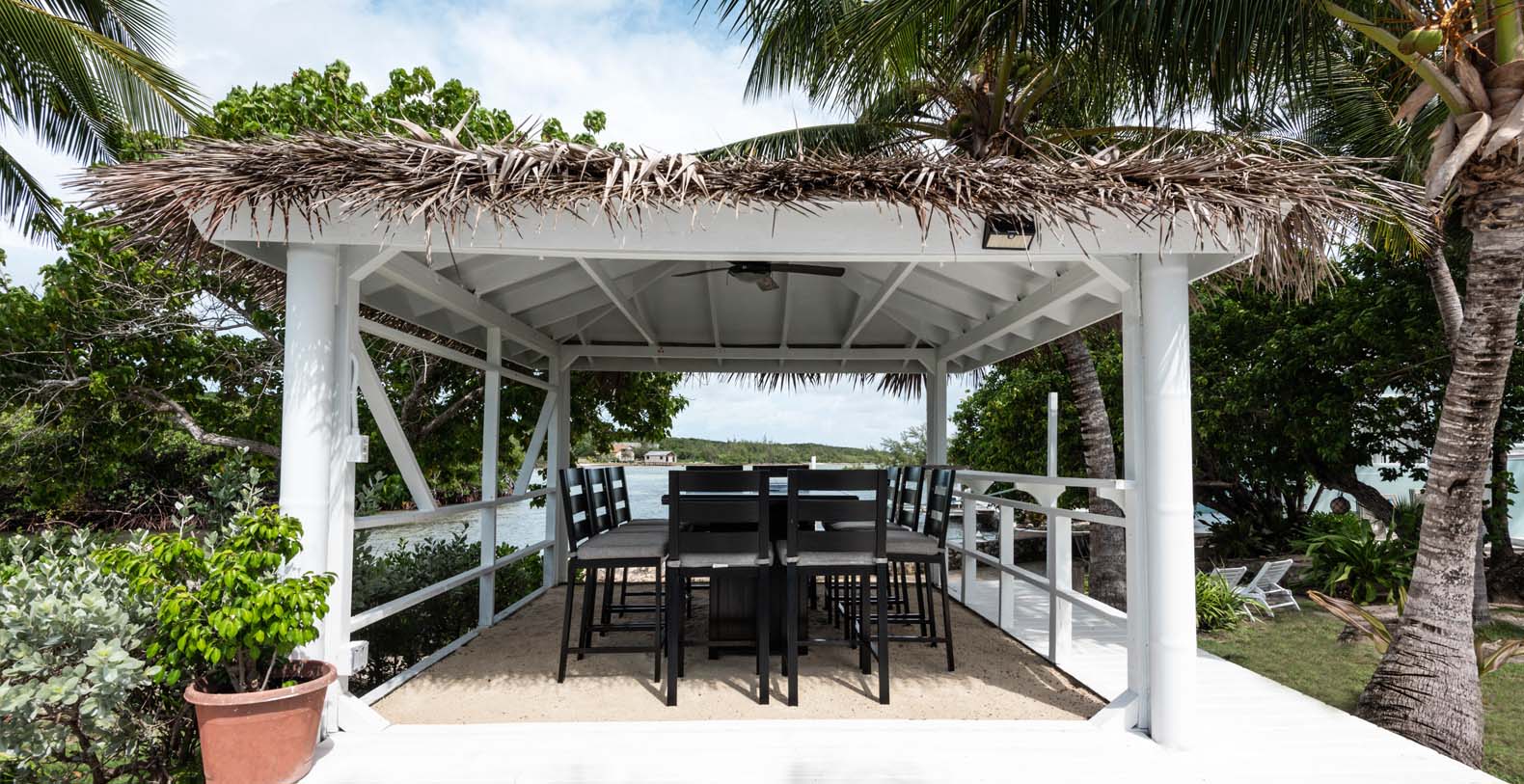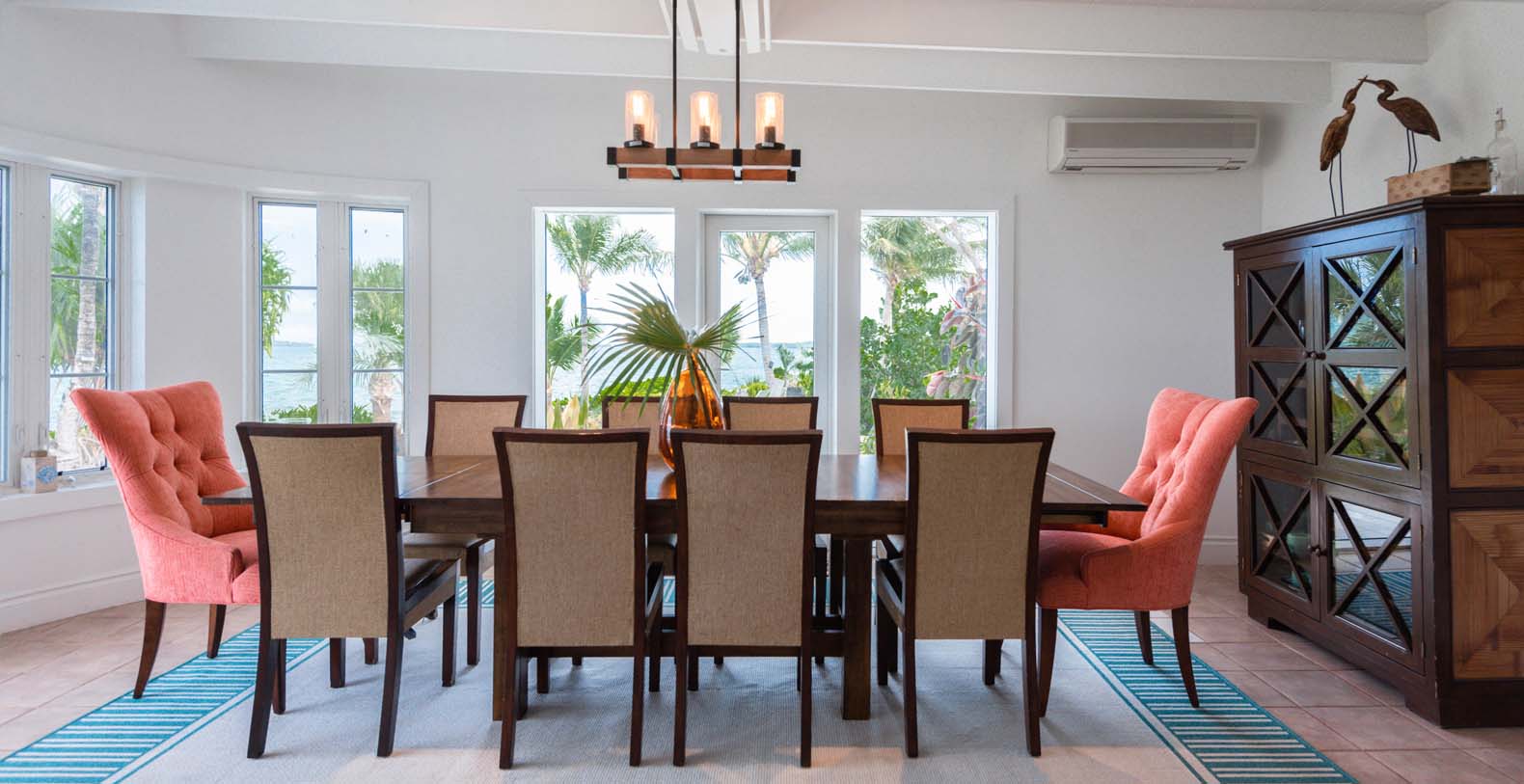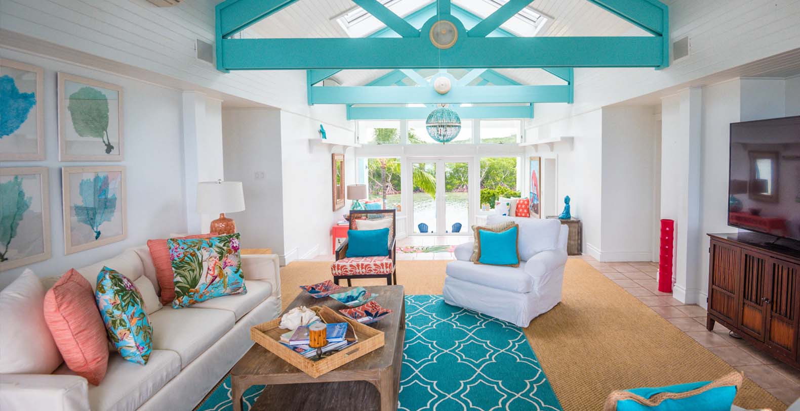 Middle Cay has two homes, and both have WiFi and air-conditioning. The Main House has an open kitchen and dining space with stainless steel appliances, granite countertops, and a dining table that seats 8. Its living room has a flatscreen cable TV and opens to a private patio. Outside, there’s a heated pool and an outdoor shower.