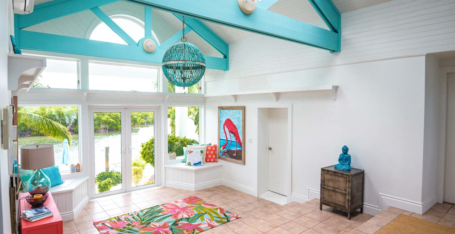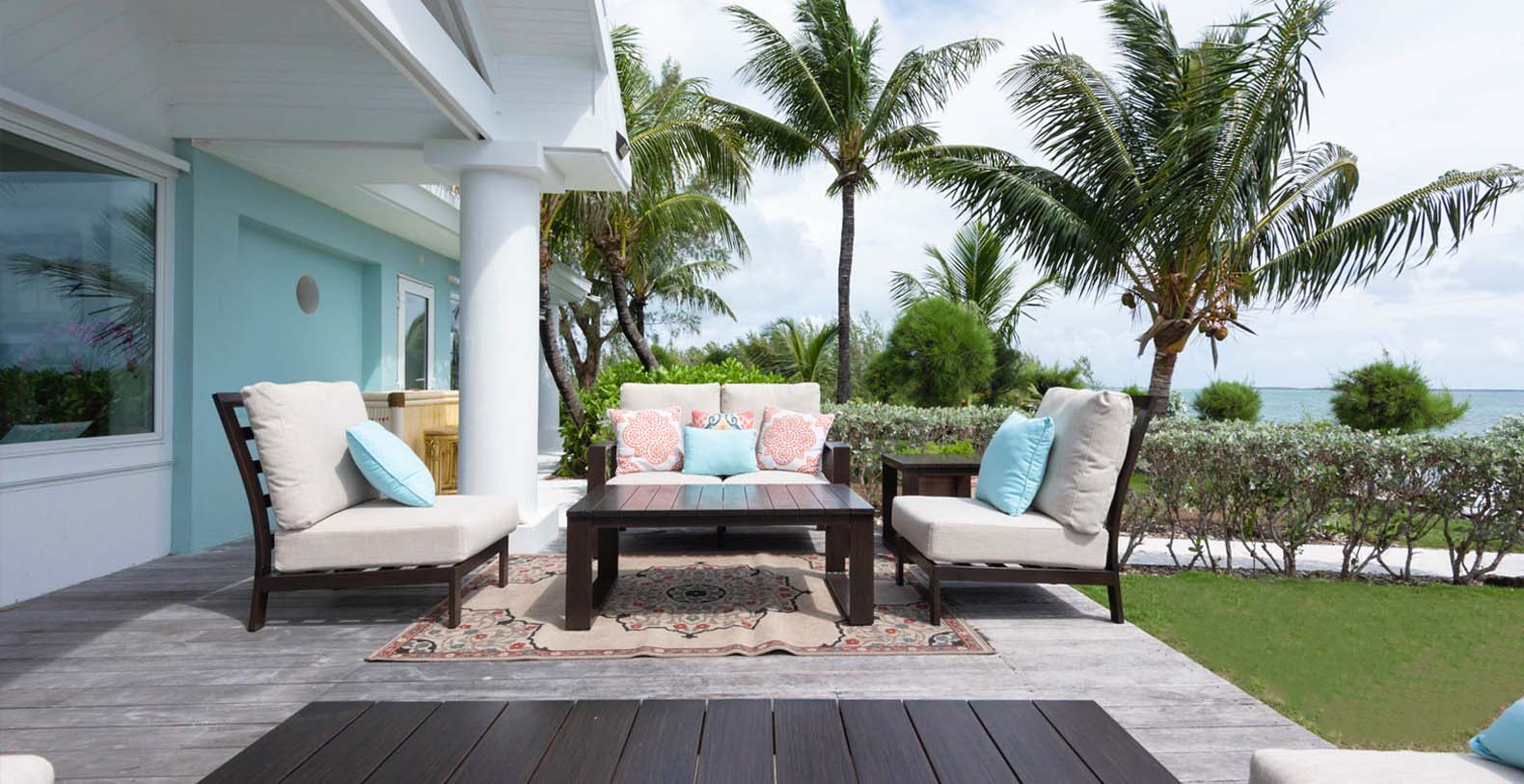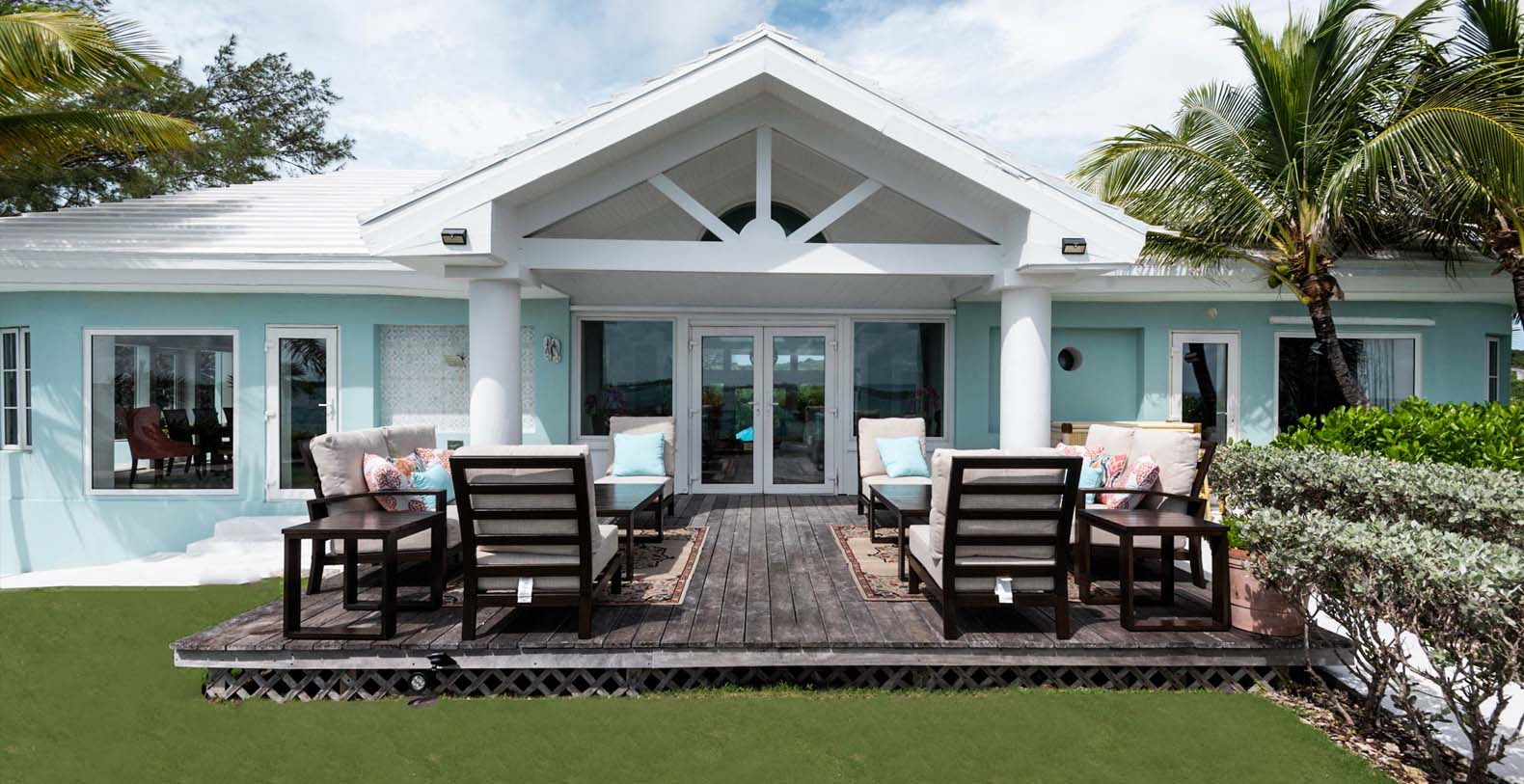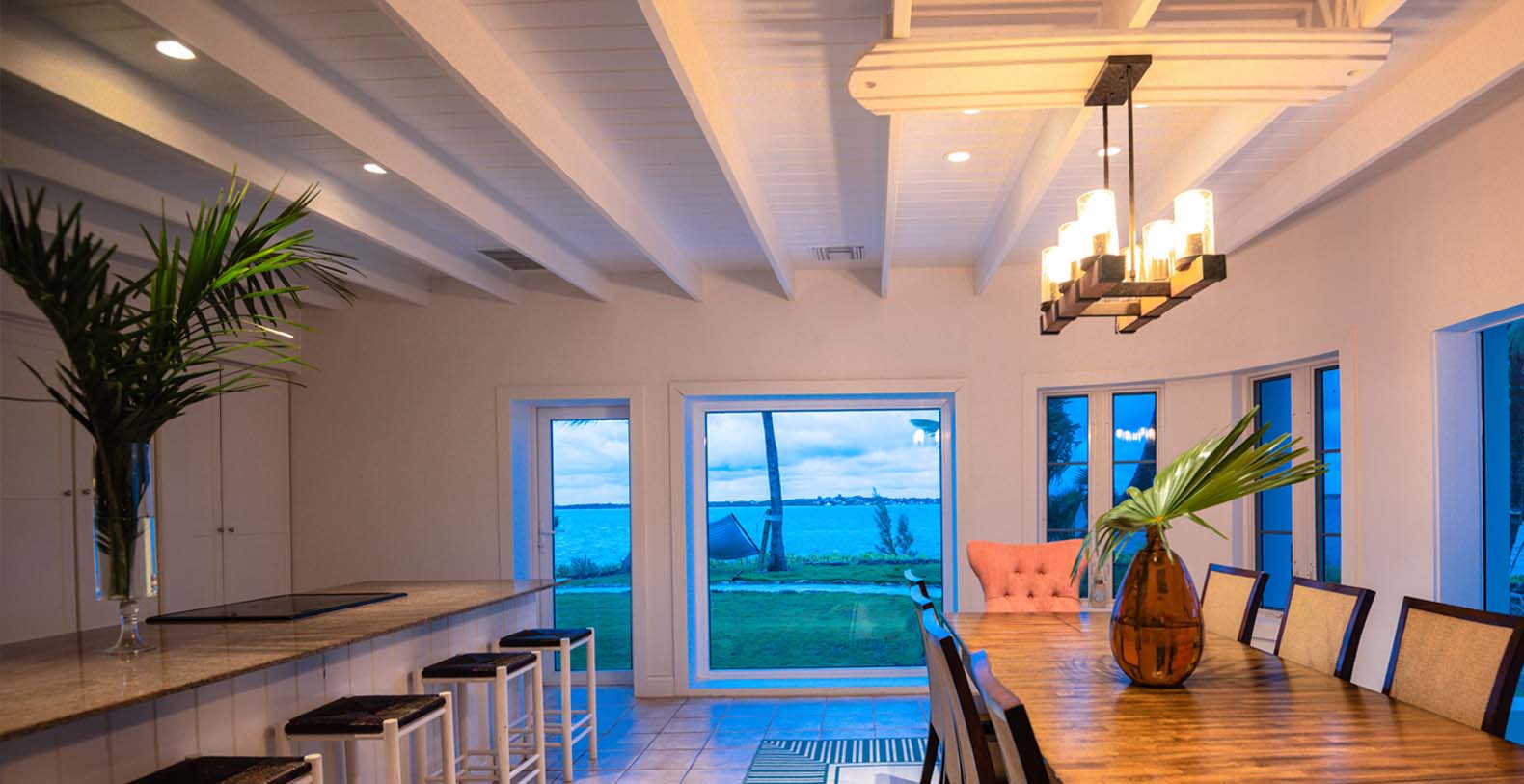 Middle Cay has two homes, and both have WiFi and air-conditioning. The Main House has an open kitchen and dining space with stainless steel appliances, granite countertops, and a dining table that seats 8. Its living room has a flatscreen cable TV and opens to a private patio. Outside, there’s a heated pool and an outdoor shower.
