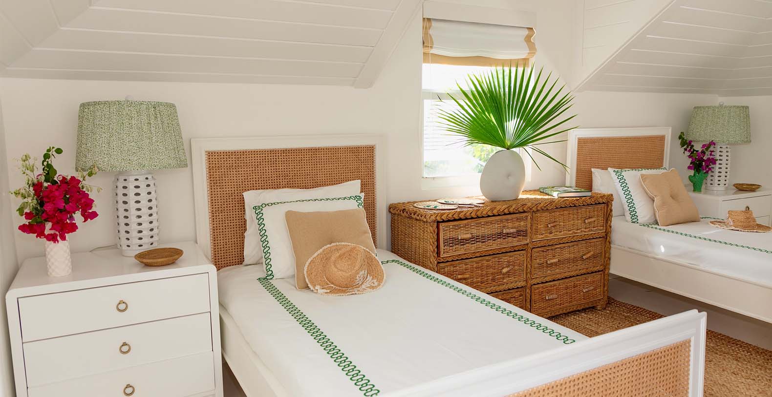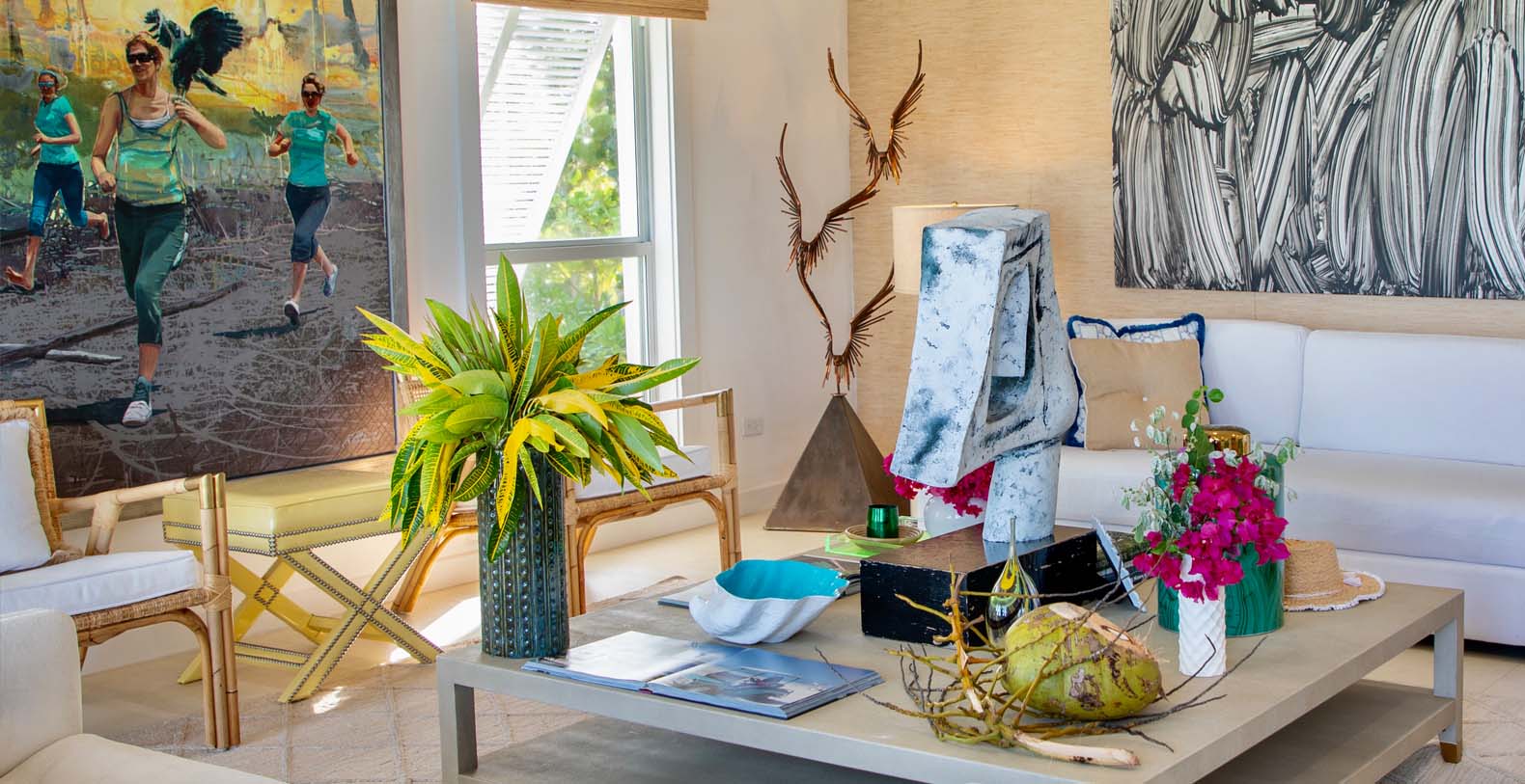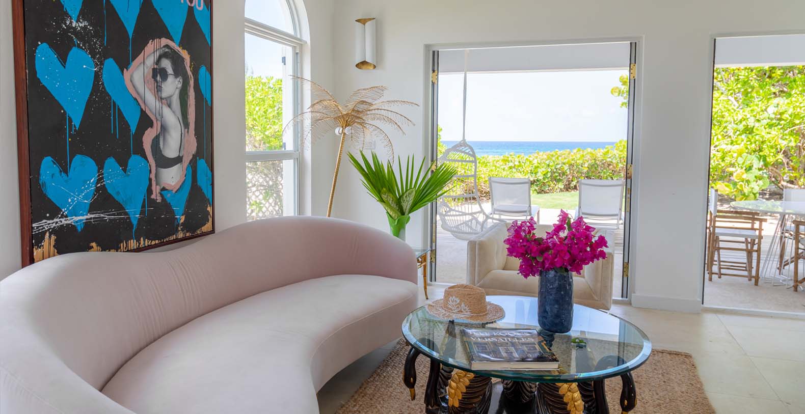 The immaculate interiors are beautifully decorated with mid century furniture featuring designers such as Karl Springer, Curtis Jere and Vladimir Kagan showcased alongside vintage rattan pieces. The walls are adorned with stunning contemporary art from the owners private collection. Sea Siren comprises of a main house that has four bedrooms and three bathrooms while the cottage has two bedroom and two bathrooms, sleeping a maximum of 12 guests. Both the house and cottage which sit directly on the ocean for unparalleled privacy surrounded by lush tropical landscaping.
