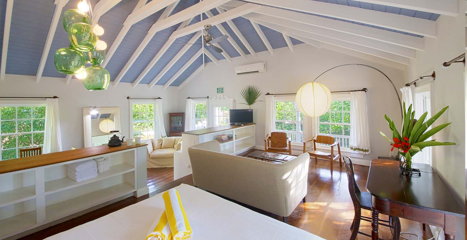 Stone House is part of the squires estate collection of beautifully restored 19th century homes on the hill above governors harbour, furnished with antiques from around the world. The décor and level of finish will delight the most discriminating world traveller. Our manager will greet you upon arrival and be available to assist you as needed. She can arrange for daily housekeeping, a private chef, or a car rental (extra charges apply), and provide advice about island activities. Other staff at squires estate include a full-time gardener and housekeepers. Laundry and ironing services are provided on the premises at no charge. Stone House can be combined with other historic homes and cottages in the squires estate collection for larger groups.