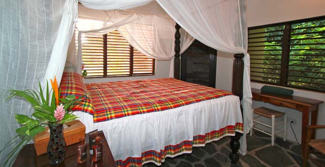 Bougainvillea Villa is located in one stand-alone building with ocean and piton view. The villa boasts 1912 sq ft with a fully equipped kitchen and four poster king size bed. Tennis, golf, diving, fishing, biking, horse-riding and more are all available in the vicinity of Stonefield Estate Villa Resort and arrangements can be made through our concierge service.
