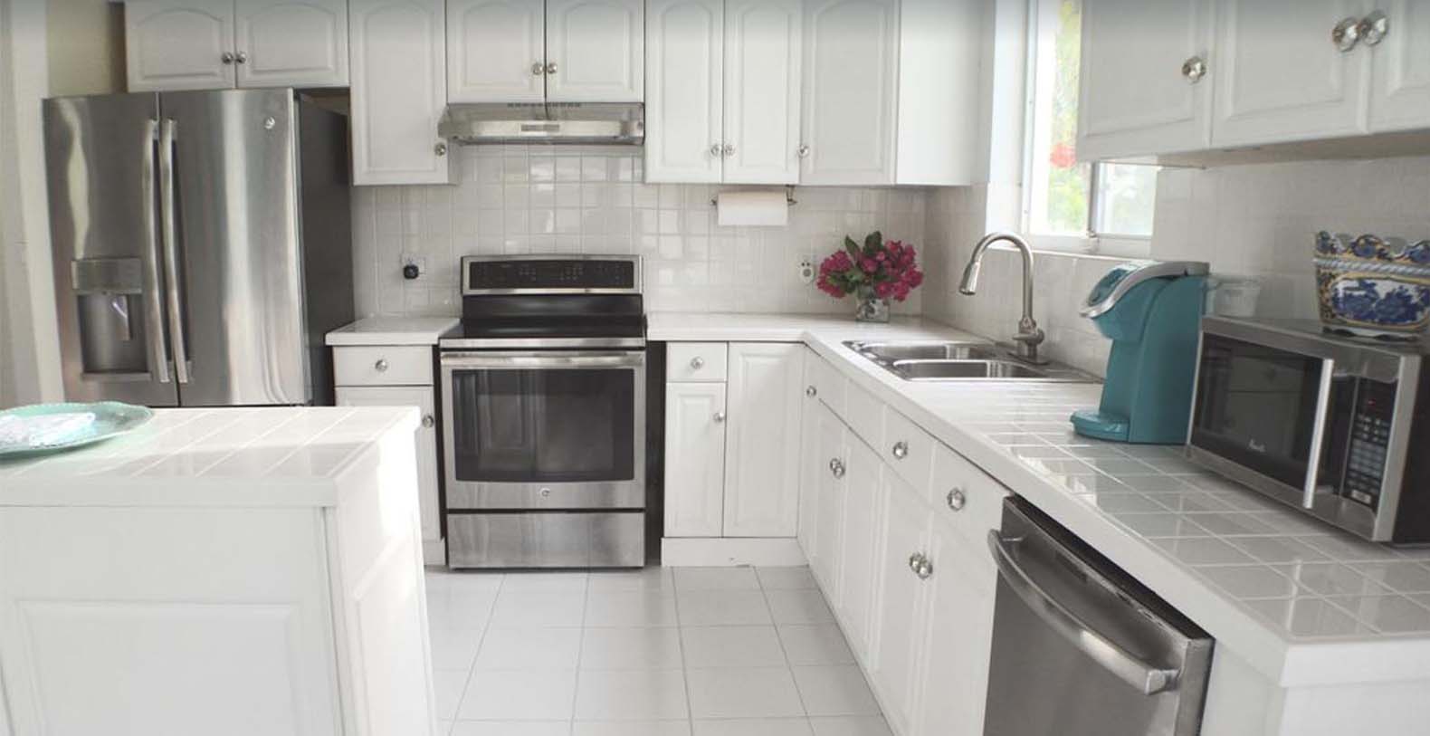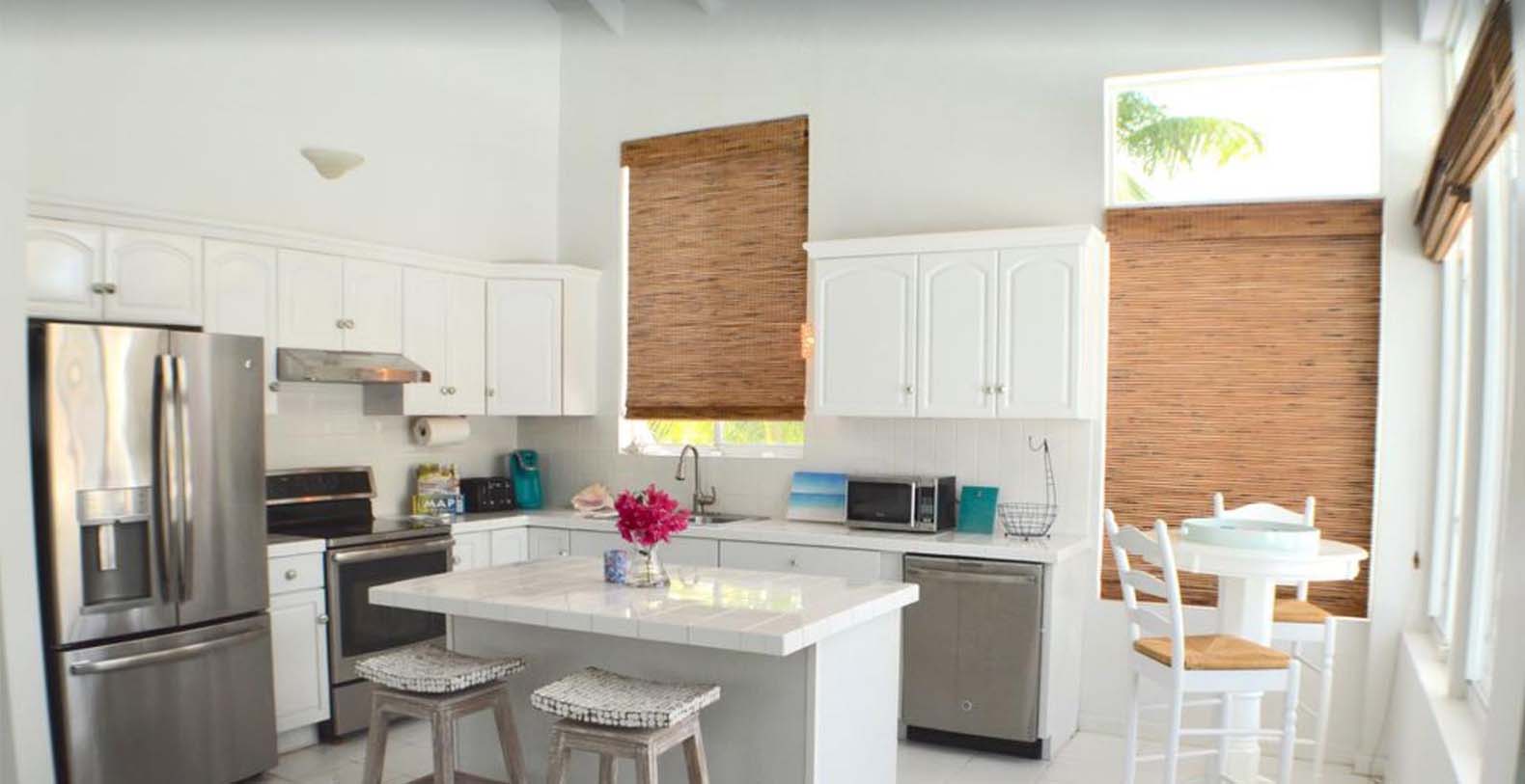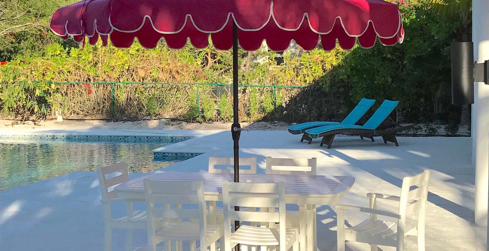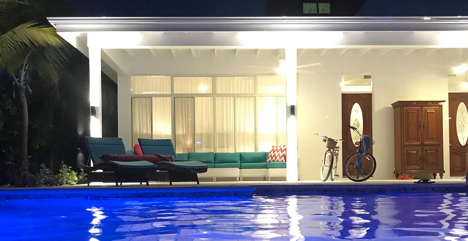 Enjoy the comforts of the Pool level living room with exposed ceilings and bask in the great natural lighting from the 8ft high windows all around. A Samsung TV (with Blue Ray DVD with Smart TV apps) in the family room, adds to the entertainment and keeps you connected, though who would choose to surf the web when you can enjoy a lazy day by the poolside or beach combing a few steps away? The fully equipped kitchen with new stainless-steel appliances is ready for meal preparation, or you can BBQ on the pool patio and dine alfresco. Walk 4 steps upstairs to a spacious master bedroom with king bed and ensuite bathroom boasting a Jacuzzi tub and walk in shower. You can also enjoy the views of the blooming bougainvillea and swaying palms outdoors while relaxing in bed. All three bedrooms have new Samsung Smart TVs and Bluetooth enabled speakers. The oversized 44-foot-long covered patio under 11 ft. ceilings comes complete with a large sectional, outdoors fans and romantic lighting. The expansive pool deck accented by comfortable chaise loungers is the perfect way to enjoy the Caribbean sun. Additional touches include, outdoor Bluetooth speaker, hammock under the palms, unique pink umbrellas, alfresco dining, plush pool and beach towels and the most amazing stargazing you will find this side of Paradise.