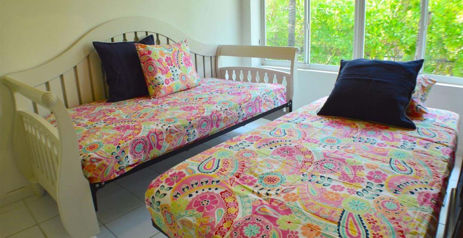 Villa can sleep up to 8: King master bedroom, Queen bedroom, and a trundle bedroom that can be a King, and a Queen sofa in the living room. Additional person fee is $30 each plus tax per night after the first 6 persons.