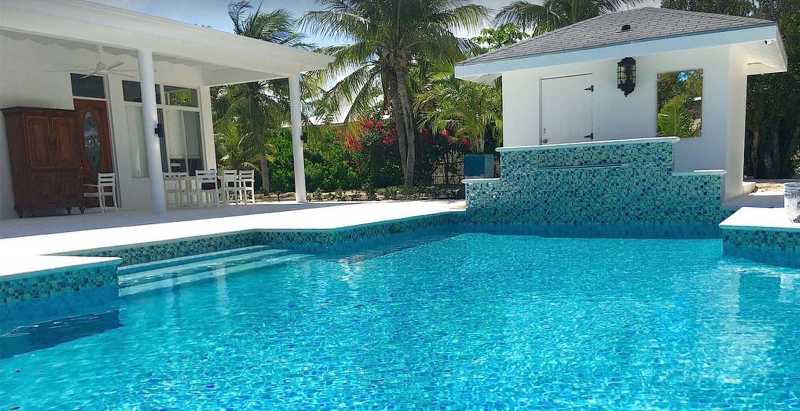 Welcome to this beautiful Caribbean Chic designed, 3 Bedroom, 2 Bath home just and easy 4-minute walk to the water’s edge of famed Pelican Beach in Grace Bay, Providenciales, Turks and Caicos Islands. The villa offers a large fresh water, sport bottom, 32′ x 22′ private swimming pool with a tanning shelf, sleek waterfall feature and cool LED lighting. The living space is outfitted in tasteful modern Caribbean décor, large 8ft windows and beautiful views of the large pool, gardens and coconut palm trees.