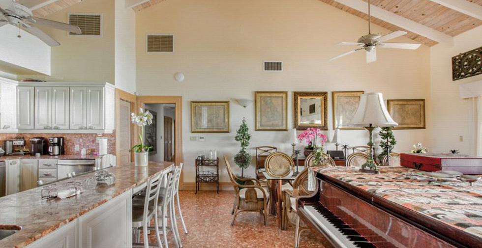 The Villa is comprised of a lovely main house as well as guest suites. Decorated with elegant furniture pieces combined with tropical accents gives the villa a very inviting and warm feel. The main house of the villa commands your attention with its beautiful entrance hall, its large floor plan and breathtaking view of the crystal clear waters of the island. The lovely dining room is equipped with a grand piano for your enjoyment. The kitchen is fully equipped with appliances that will make your stay more comfortable. The master suite has a king-sized bed and an en suite bathroom which includes a shower and a Jacuzzi bathtub. The main house annex that is integrated within the main house is fully equipped with a full kitchen, one king size sized bedrooms ( 2 twin XL) and a queen size bedroom and two en-suite bathrooms.