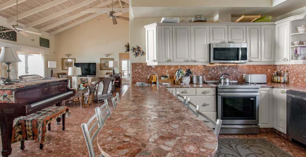 Three Dolphins is situated at a prime location on the island as it’s secluded from the inner city yet accessible to many facilities. There are many exciting activities that will keep you joyfully occupied during your stay. Imagine pony riding, bone fishing with a guide that has over 25 years experience, hitting a few rounds of golf, or jet skiing just to name a few. Another added feature of this villa is the fact that the marina is only about 5 minutes away as it’s located just down the street, where boats can dock. The turquoise waters at the front of the villa gently slope to approximately 5 feet .