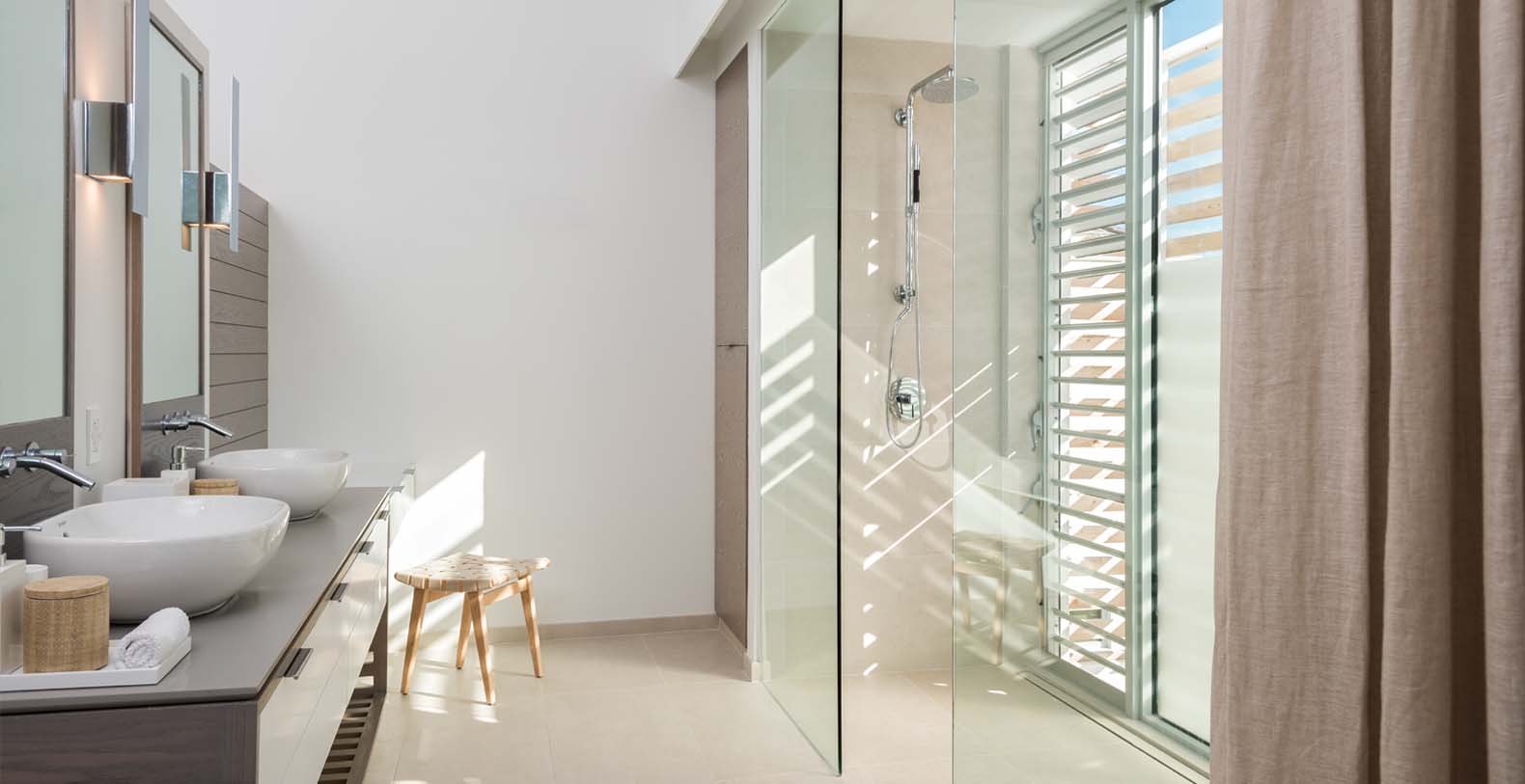 Stunning examples of contemporary beach architecture, the villas blur the line between outdoor and indoor living. The open living spaces are layered with organic materials, including local wood and coral stone. Expansive glass sliding doors lead to private infinity-edge pools, signature outdoor showers and multiple terraces for alfresco dining and lounging. Indoors, clean lines define gracious living areas, open-layout kitchens and ocean-facing master suites.