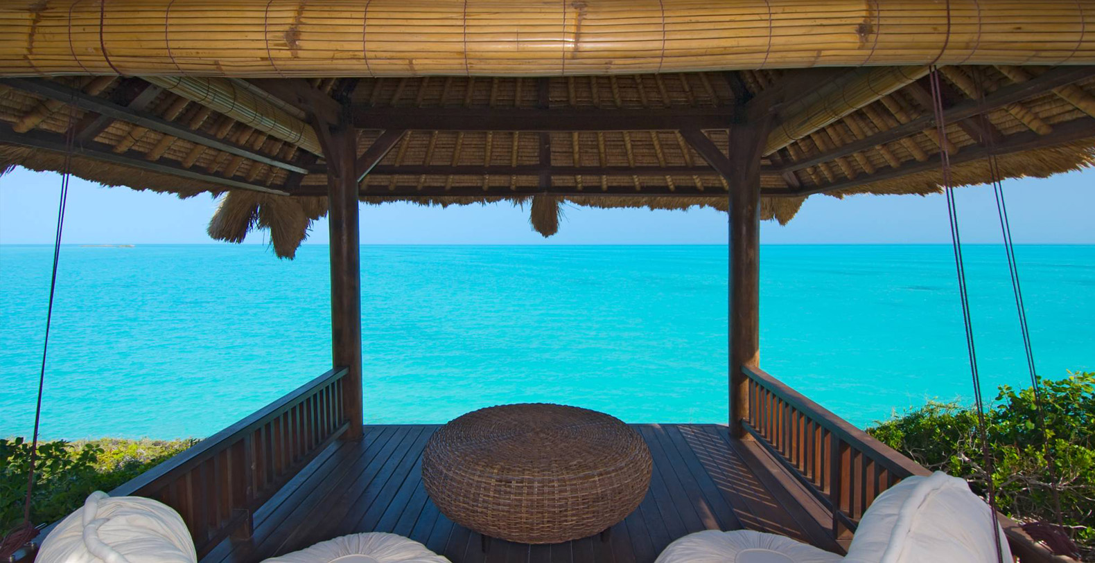 Thatched Oceanfront Gazebo with Relaxed Seating