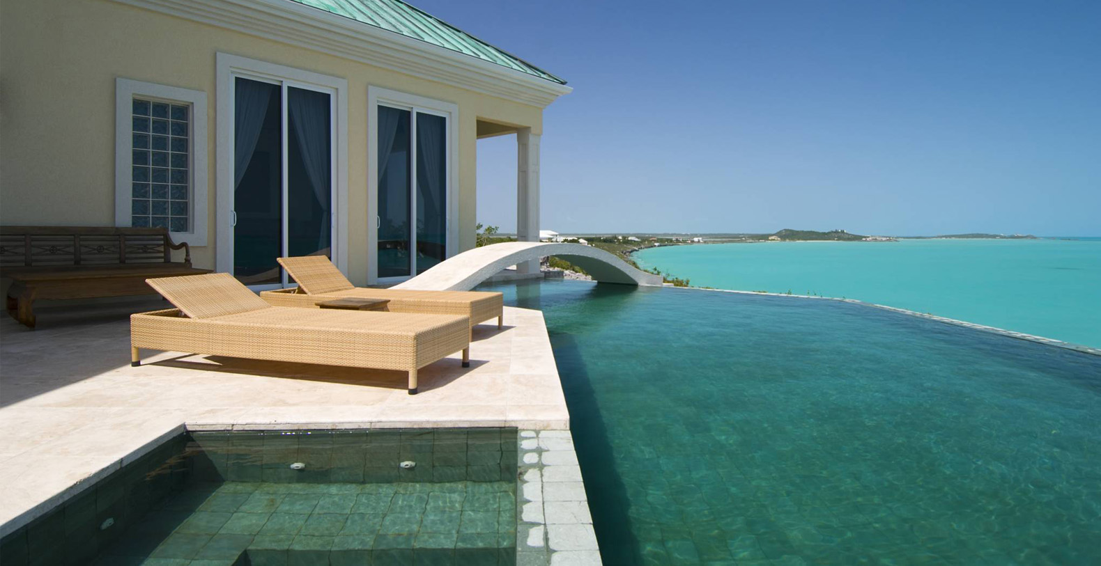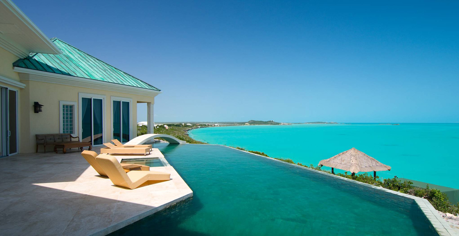 This Luxury Villa built on an elevated crescent-shaped ridge overlooking the Caribbean waters of the Turks and Caicos Banks, is surrounded by the clear blue panorama of spectacular ocean vistas and cooled by the constant tradewinds. Here is an extraordinary vacation home with simply the best of everything.