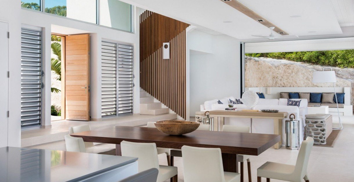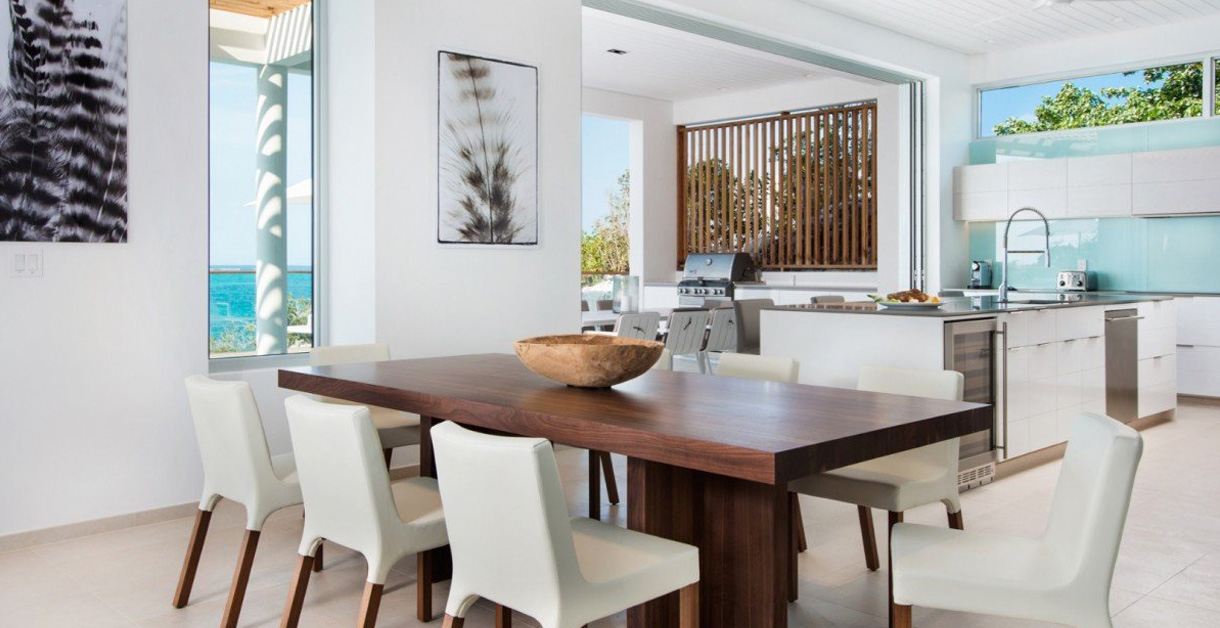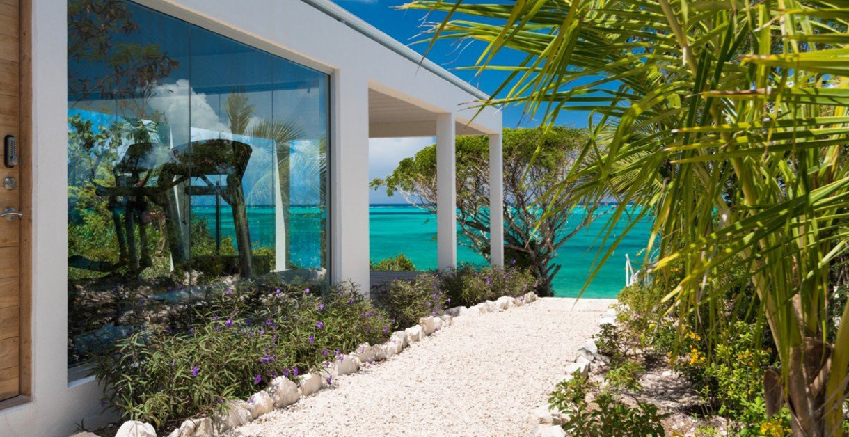 Beachfront Villa 5 is located along coveted International Drive, a prestigious cul-de-sac known for its designer homes. The area offers stunning views of Turks and Caicos’ North Shore, the protected Princess Alexandra National Park and the teeming barrier reef. This private neighborhood offers tranquility with low density and scant traffic. Right on the oceanfront of Babalua Beach and less than ten minutes from Grace Bay, you will be perfectly poised for the ultimate Caribbean holiday!