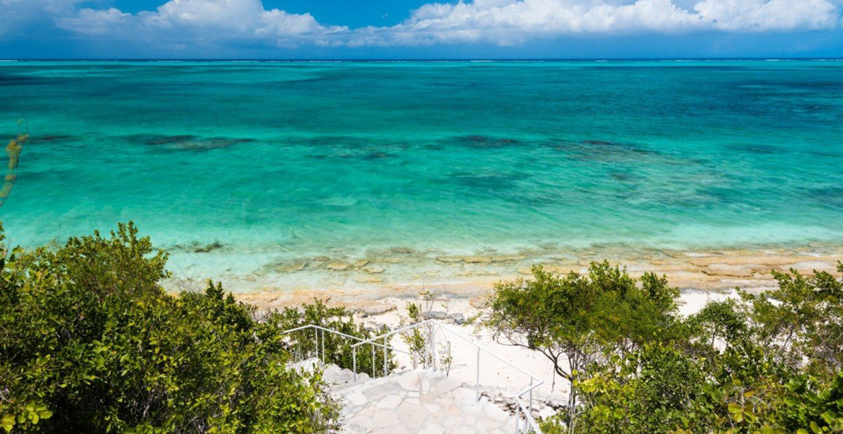 The combination of private beach access, easy and breezy living and magnificent views along with the vacation rental’s luxury services and management make this property a one-of-a-kind real estate opportunity in Providenciales. Beachfront Villa 5 is generously embedded in the lush, natural vegetation of the islands with less than one home per acre. Outdoor perks include a swimming pool, an alfresco dining area for eight, a barbeque, fire pit, an outdoor shower and plenty of sun loungers. The private beach area is accessible via a carved limestone staircase.
