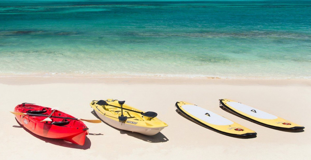Choice of one of the following activities with Big Blue for up to 3 guests: Kiteboard lesson, Caicos Cays Cruise, Snorkel or Kayak Eco Tour, and SUP Eco Tour