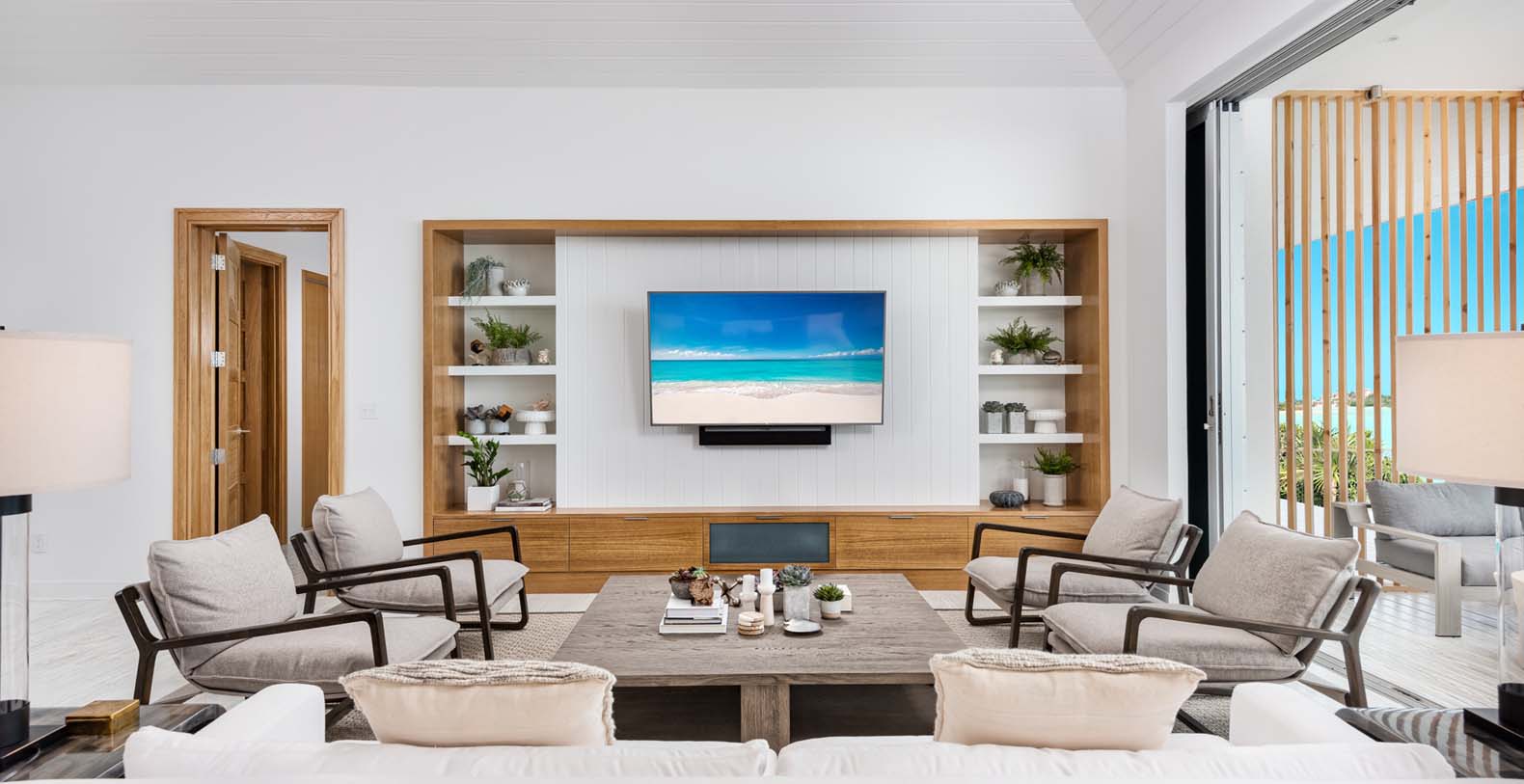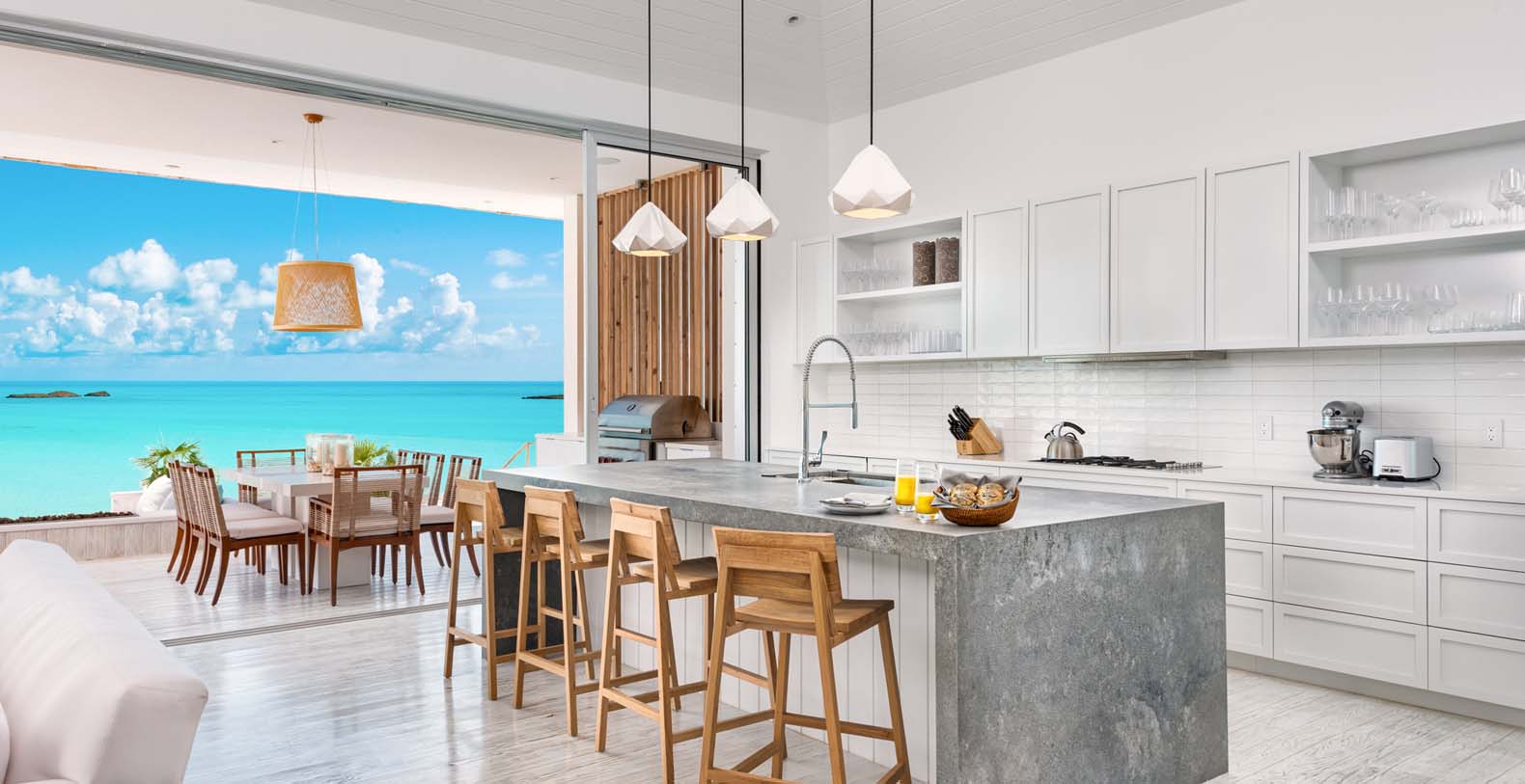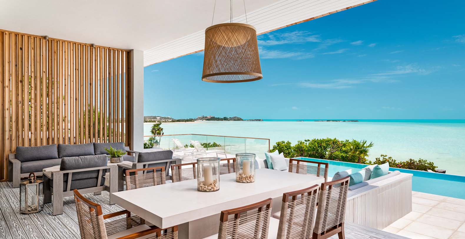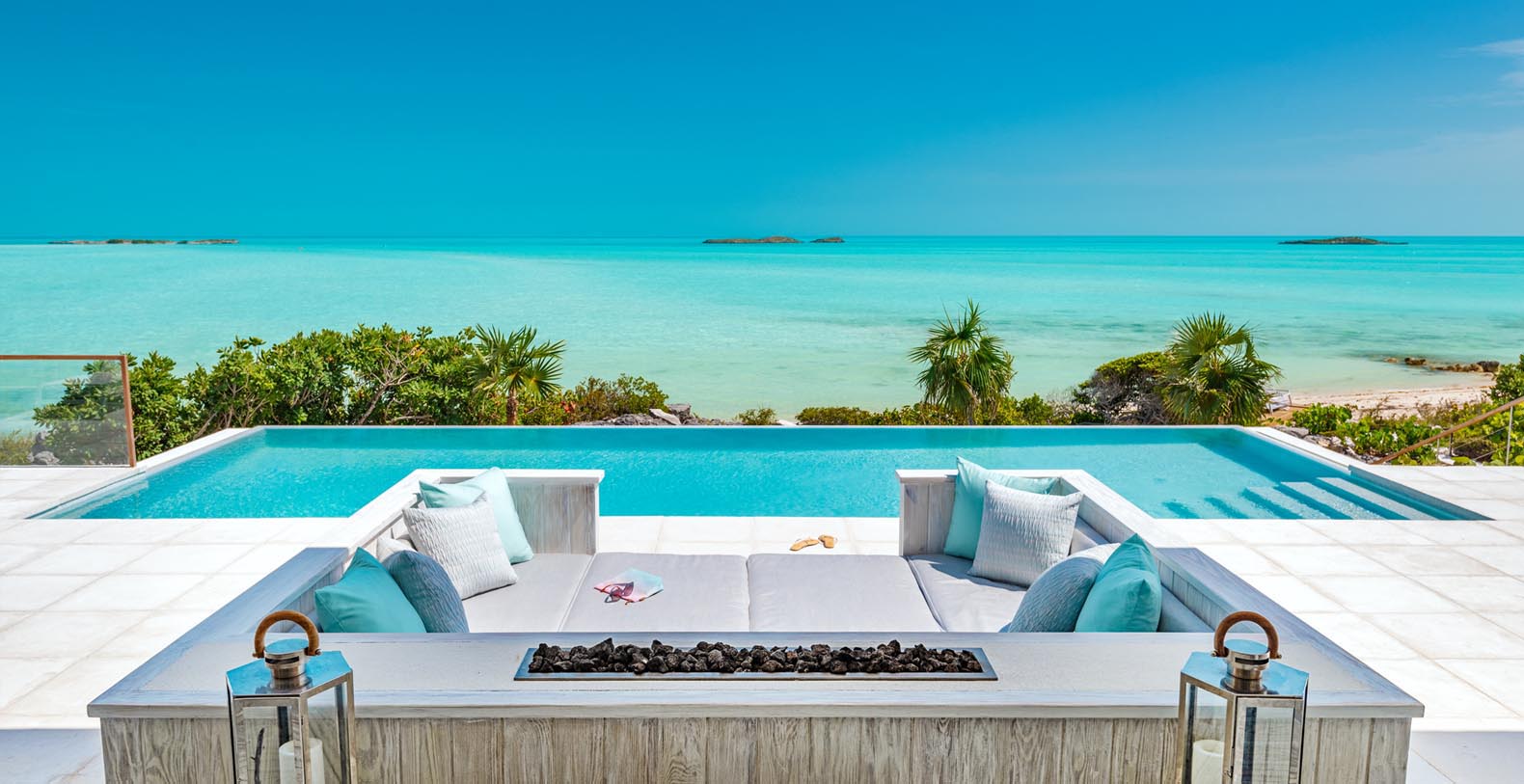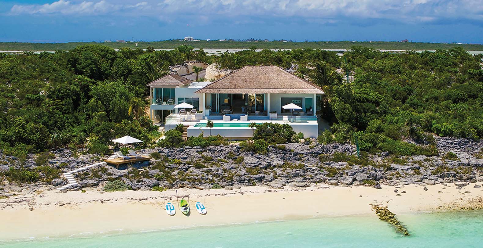 As you walk down to the beach from the pool deck, guests have a manicured and lit walkway to the beach as well as beach deck with chairs and ample shade. The beach will feel like your own private stretch of sand, with next to no foot traffic from neighboring homes. Bristol Bliss' location on the South side of the island, mean guests can enjoy the shallow and clear Caicos Banks. For as far as the eye can see (roughly 50 miles out and 90 miles across) the depth does not exceed 8' to 10'.