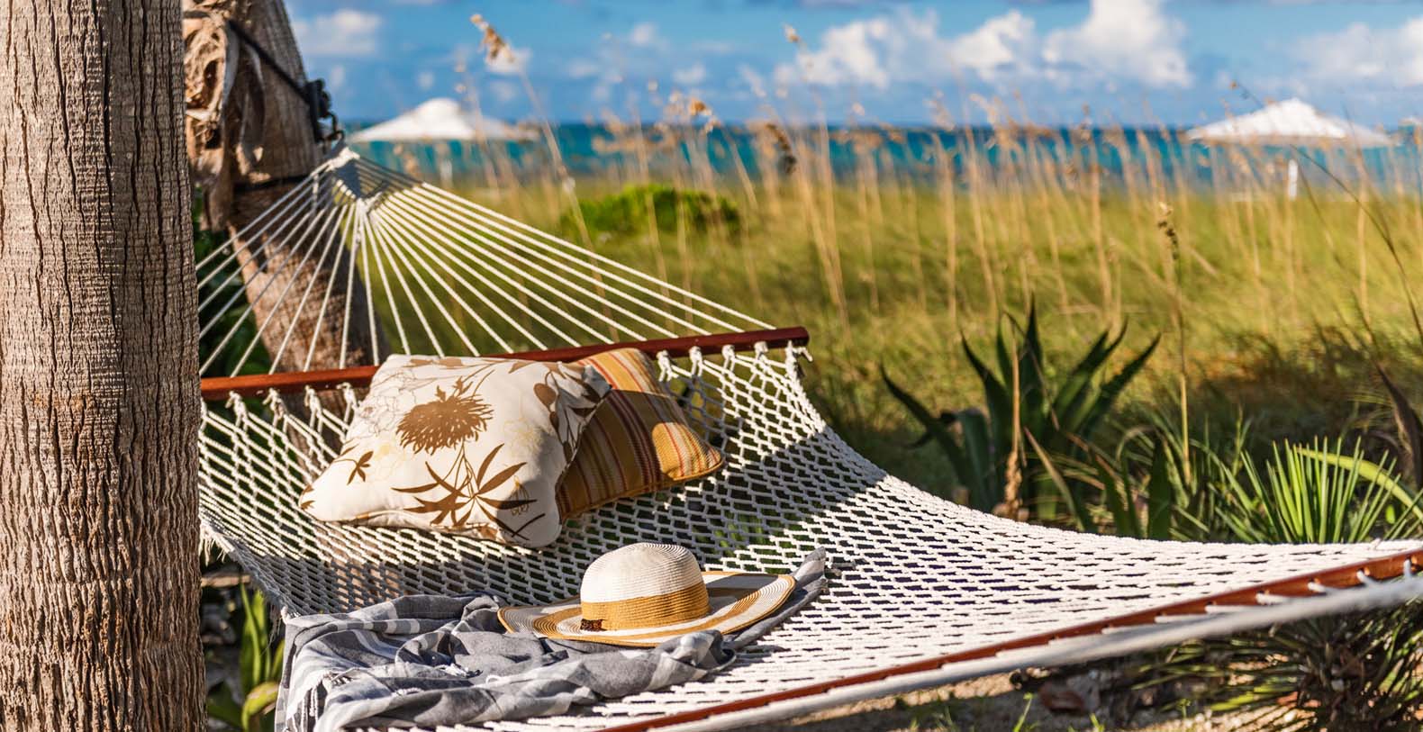 Relax and read a book while you swing in our hammock located under palm trees while enjoying views and breezes of Grace Bay Beach.