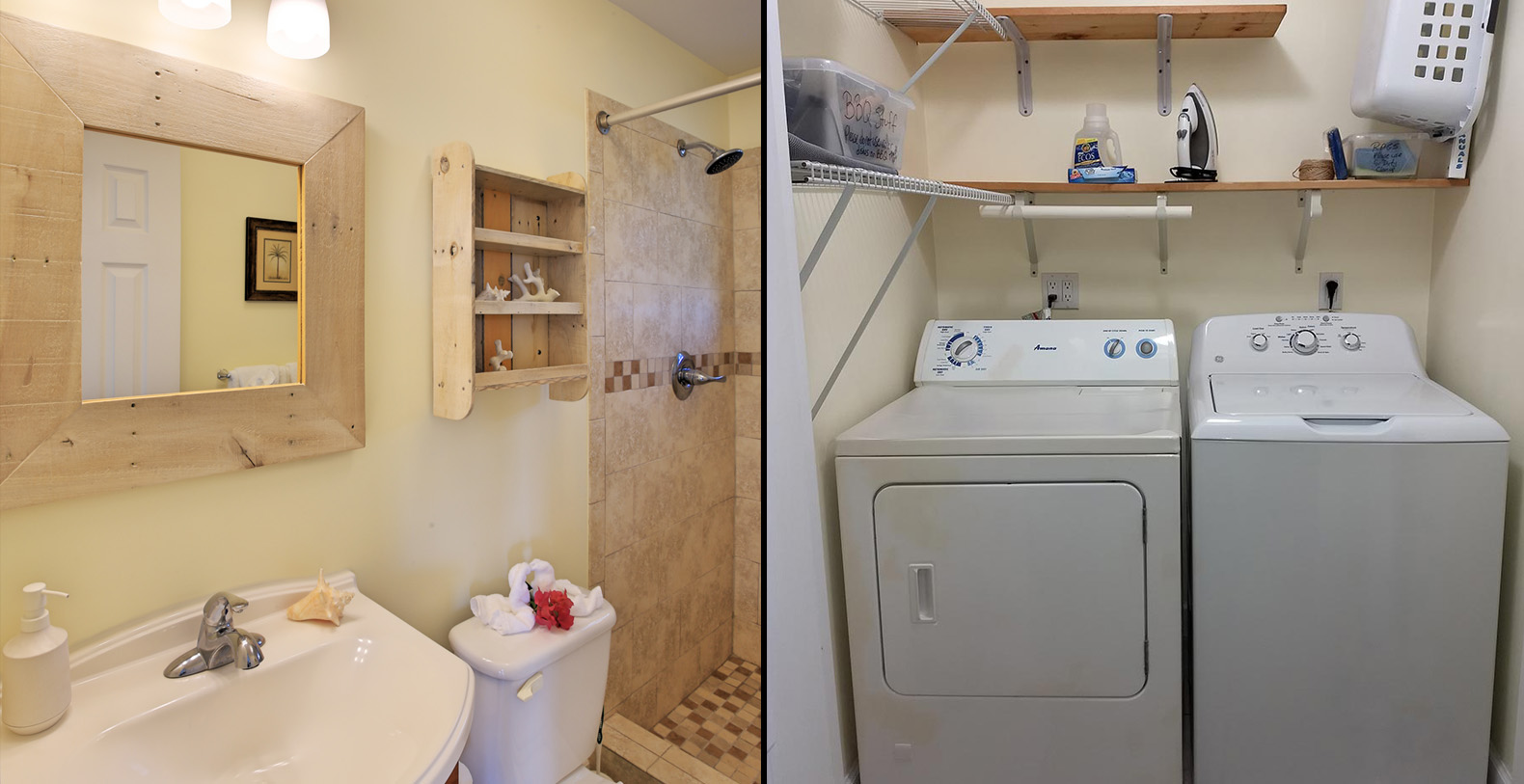 Starter size amenities only provided on arrival, such as shampoo, conditioner, soap, toilet paper, paper towel, sponge, dish soap and laundry detergent