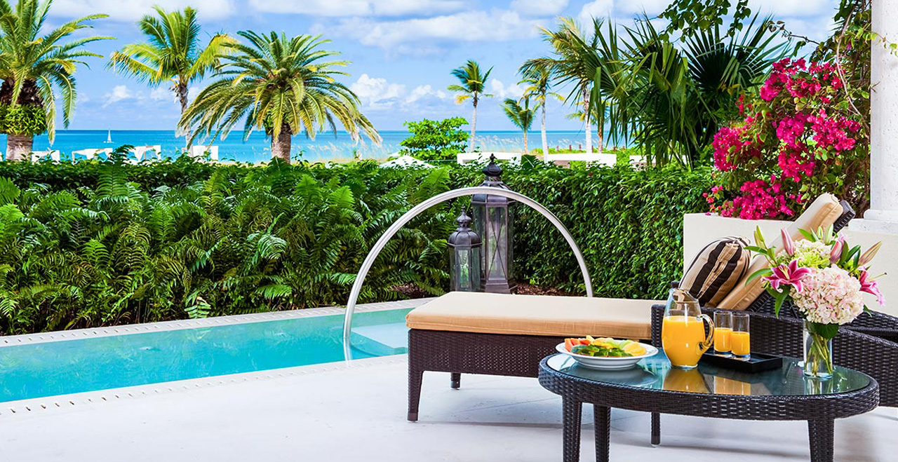 Just steps from the door, you will find sun loungers and the pristine waters of the private plunge pool. Rinse off in the alfresco shower. With an established reputation for superlative service and innovation, enjoy the many amenities of Grace Bay: swimming pool, welcome drinks, pool and beach set up alongside complimentary daily American breakfasts, start-up bar and shuttle service. Housekeeping is included and a babysitter, activities, spa services and a chef can be arranged for a nominal fee.