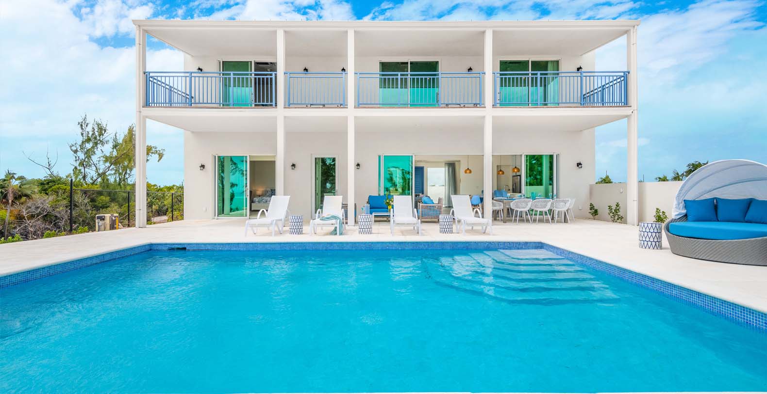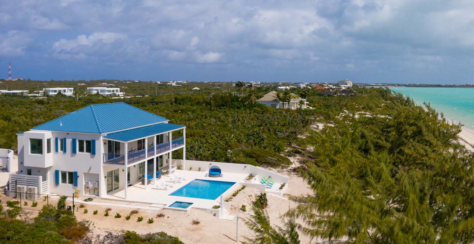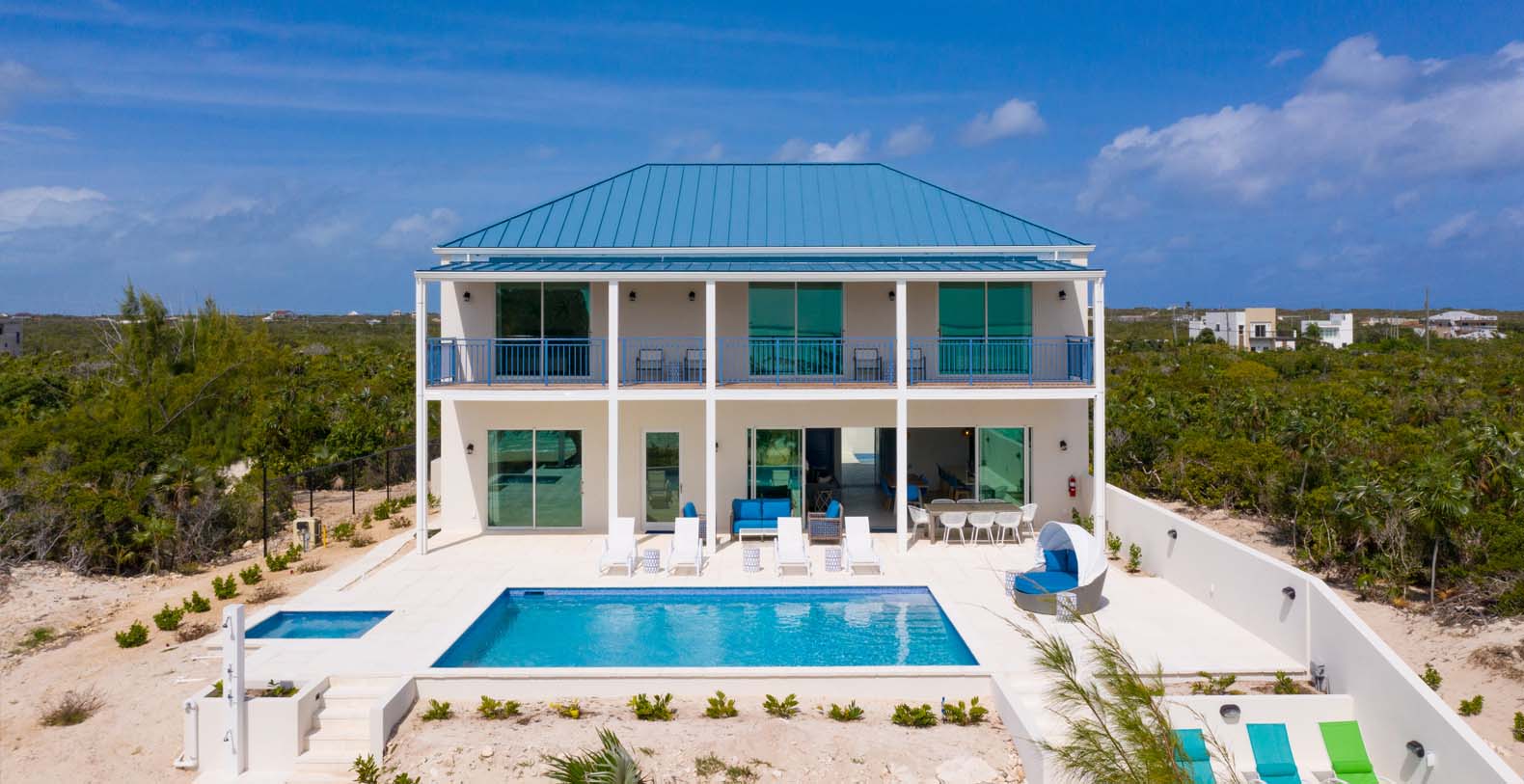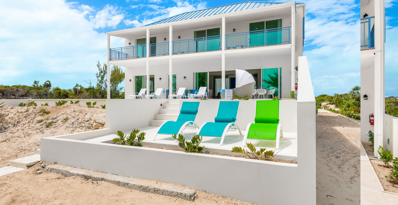 Hura Sea Villas Turks & Caicos newest luxury villas, with a beautiful Caribbean Feel and modern state of the art facility. Built for those looking to experience the sights and sounds of the Caribbean all while enjoying time with their friends and family. This 6 bedroom home features a main house with 1 King Suite and 3 Queen suites and a Guest house with 2 Queen Suites. It's a great place to stay when you want to invite friends or singles to join you but they would like their privacy. It makes for an easy "friends or family" vacation.