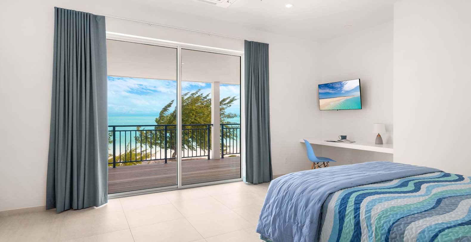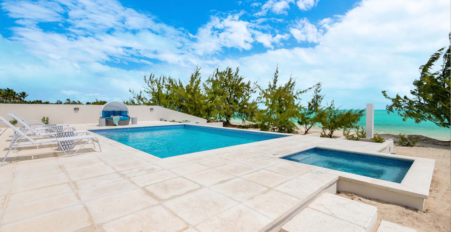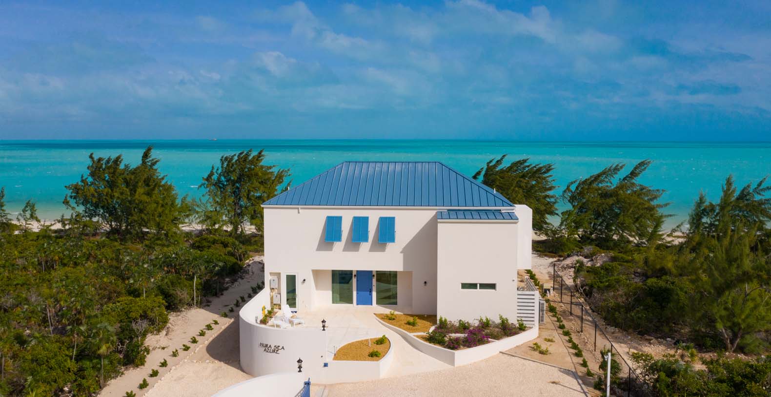 The house is carefully designed and located in Long Bay where the breezes are beautiful during even the hottest months, making it a simple choice for those who love the sun and also the cool breezes of Long Bay. Hura Sea Villas is minimal but opulent, boasting a light, airy design style. Exquisite and tranquil, the interiors exude warm hospitality and a sense of pureness throughout. This property takes your breath away in two distinct ways, the main house, Hura Sea Azure, with two floors and one completely independent guest house, Hura Sea Turquoise, with separate entrance (can be booked separately). The 100-foot Long Bay beach on the south east side of Providenciales provides endless views of the breathtaking turquoise waters. Recently refurbished with state-of-the-art furnishings to soothe your mind and your body.