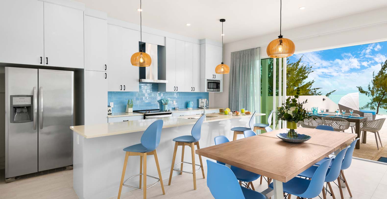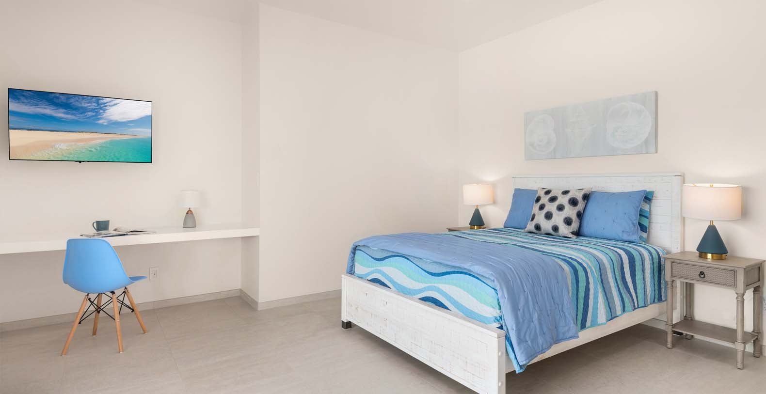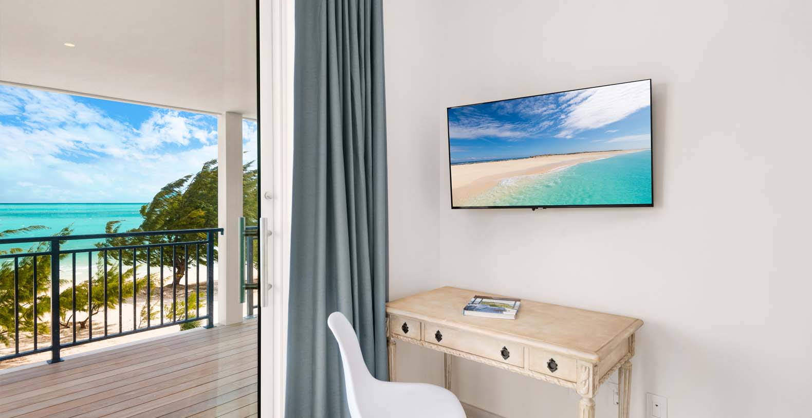 The house is carefully designed and located in Long Bay where the breezes are beautiful during even the hottest months, making it a simple choice for those who love the sun and also the cool breezes of Long Bay. Hura Sea Villas is minimal but opulent, boasting a light, airy design style. Exquisite and tranquil, the interiors exude warm hospitality and a sense of pureness throughout. This property takes your breath away in two distinct ways, the main house, Hura Sea Azure, with two floors and one completely independent guest house, Hura Sea Turquoise, with separate entrance (can be booked separately). The 100-foot Long Bay beach on the south east side of Providenciales provides endless views of the breathtaking turquoise waters. Recently refurbished with state-of-the-art furnishings to soothe your mind and your body.