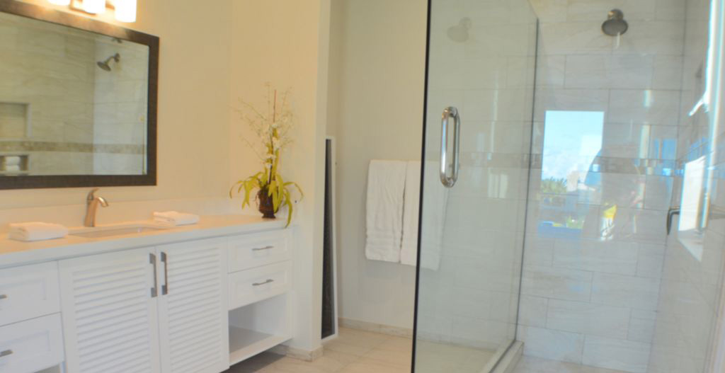 Accommodation - The villa uniquely boasts 5 bedrooms/4.5 bathrooms - three King master suites with private bathrooms on the upper floor, each enjoying great breeze and a large balcony decked out with comfortable seating and loungers, two bedrooms on the Pool level, one Queen with en suite bathroom and the other a Trundle bed with half bath.