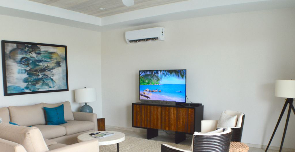 Welcome to Salt Air on the Leeward waterfront. This is a great example of life is better on the canal where you enjoy constant cool trade winds that blows off the ocean. This is how the Villa got the name Salt Air. Relax and watch the turtles and fish swim by. Slip into your kayaks or paddleboards directly from your private dock and explore the lush mangroves on the Cay via the canal. Want a private boat trip? No problem. Most tour operators will pick you up from the dock and we do have discounts on Sweet Seas for your fishing or snorkelling adventure. After a day on the sea, cool off by the Private saltwater pool, (heated as an option) or relax with a good book on the ocean view balcony.
