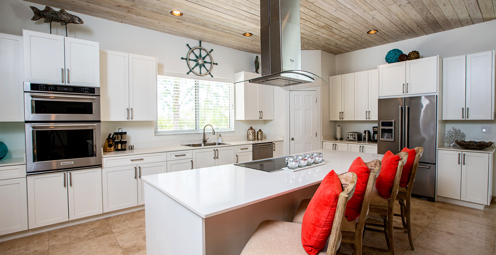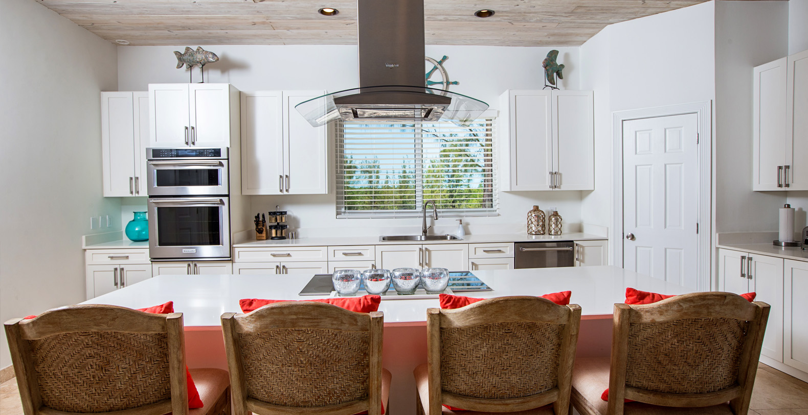 After all you deserve to be pampered. Directly situated on the turquoise waters of the Leeward Channel this villa spreads across 3600 square feet of internal living space, boasting 3 King Bedrooms with ensuite baths, plus 1 bonus room with 2 Twin beds that can be converted to a king; Queen Sleep sofa in Living room; large open plan living and dining room with a massive kitchen fit for a banquet; pantry, laundry and over half an acre of outdoor space.
