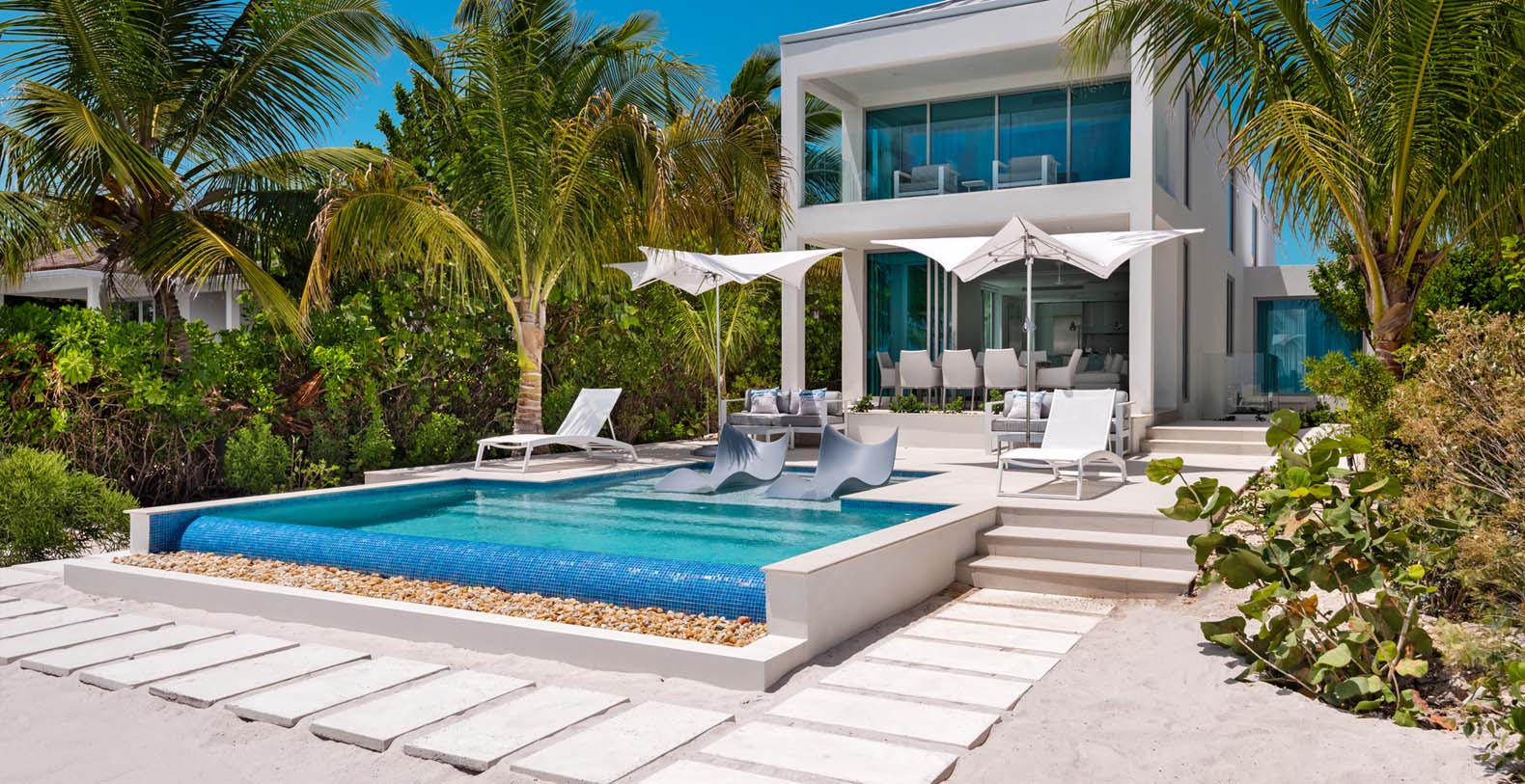 The villa features striking modern design both indoors and out with expansive living space totaling more than 5,500 square feet. Guests of Seascape enjoy superlative elevated service and an exclusive set of ultra-luxury amenities. Indulge yourself in handmade luxury at this stunning Turks & Caicos Villa.