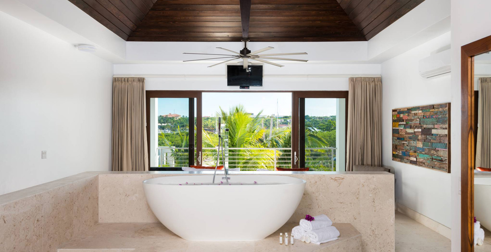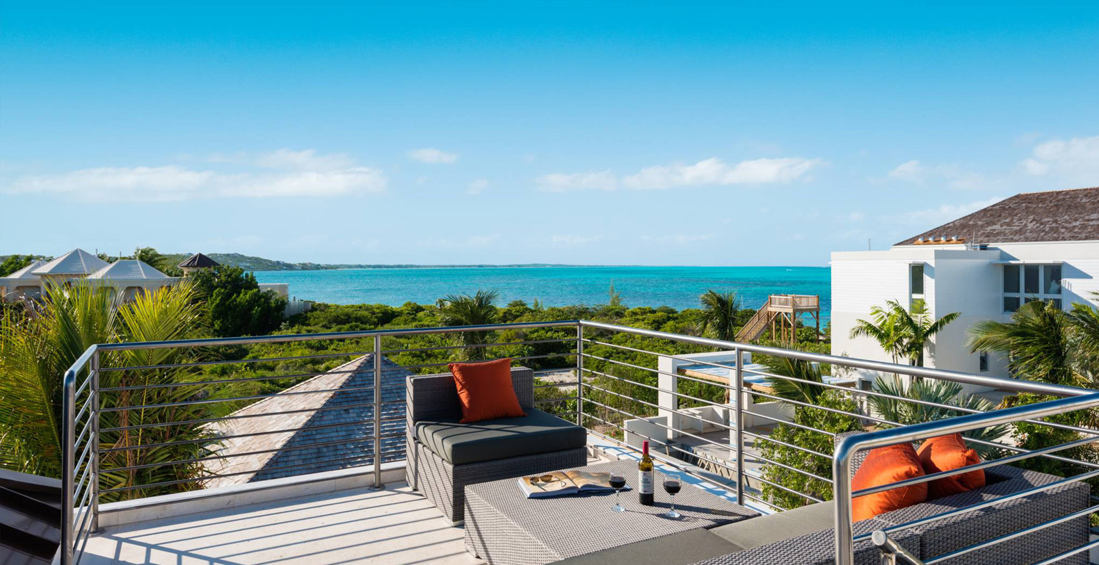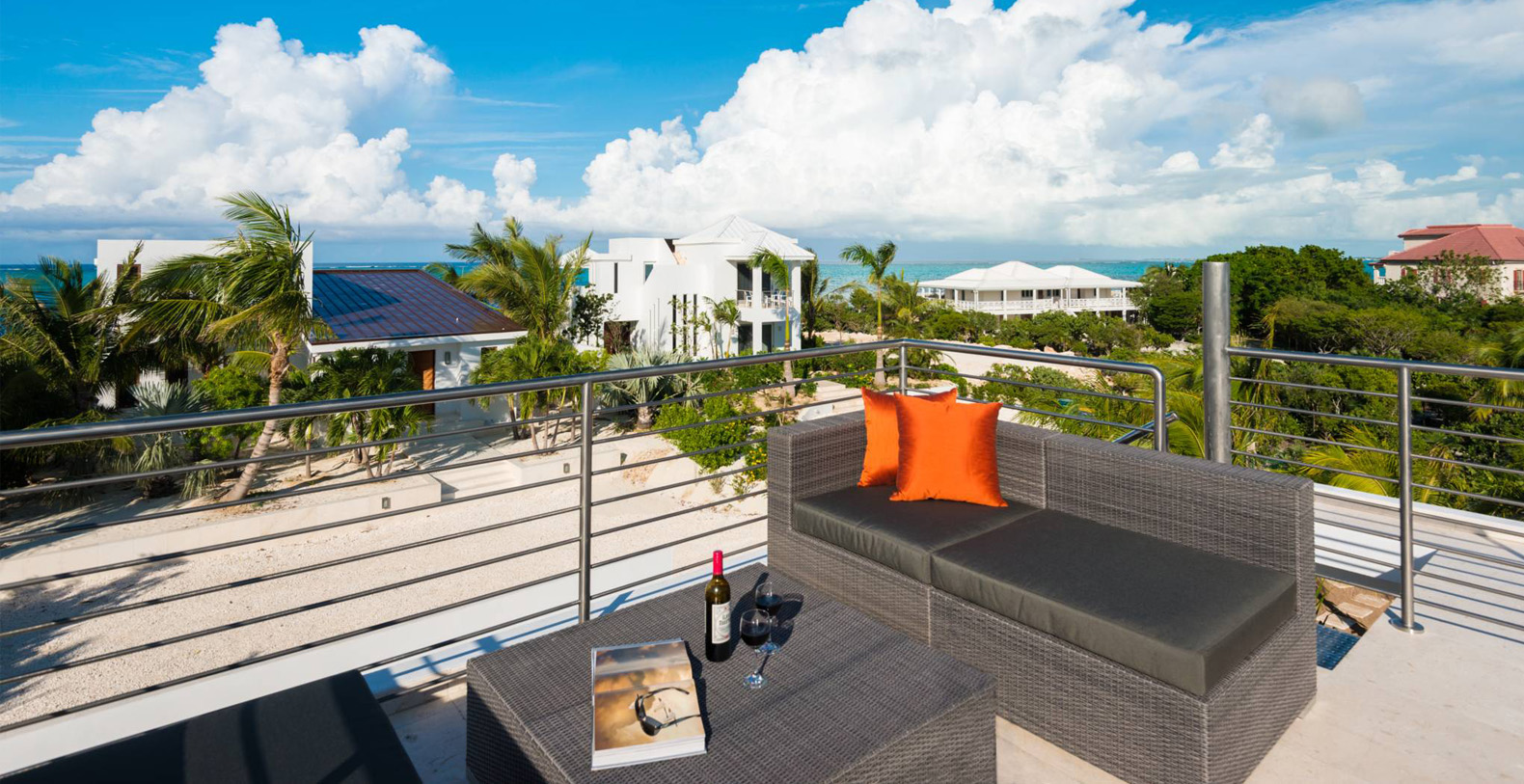Up on the rooftop terrace, you’ll be faced with a panorama of Turtle Cove and an amazing view of the unique blue ocean in front of your villa. Be sure to come up here in the evenings to see boats pass by, watch wonderful sunsets, and admire the stars.