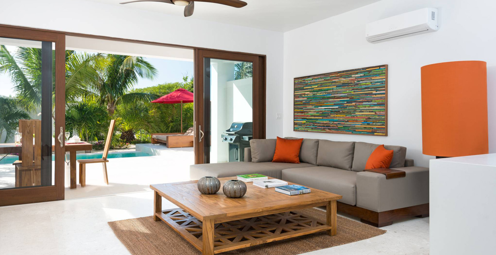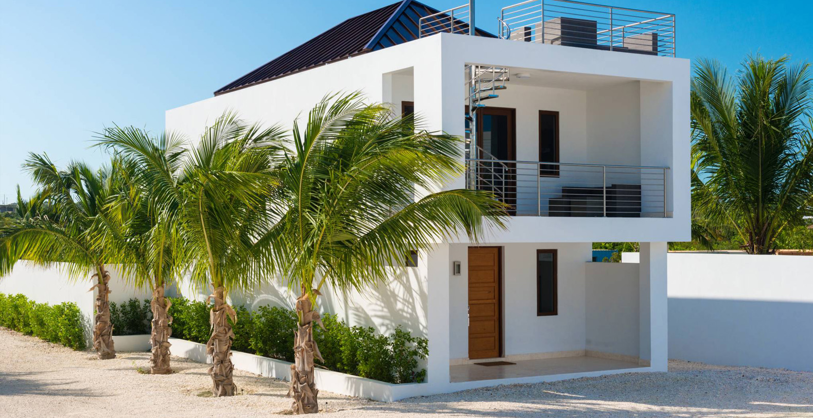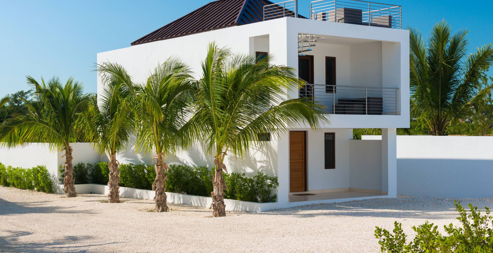 Sugar Kube offers contemporary luxury living in a private setting. This stylish one-bedroom beach villa features two levels of spacious rooms and a rooftop lounge. As soon as you step into Sugar Kube, you’ll be in an open-plan living area with sliding glass doors leading straight to your sparkling pool. The modern white kitchen is fully equipped with stainless steel appliances.