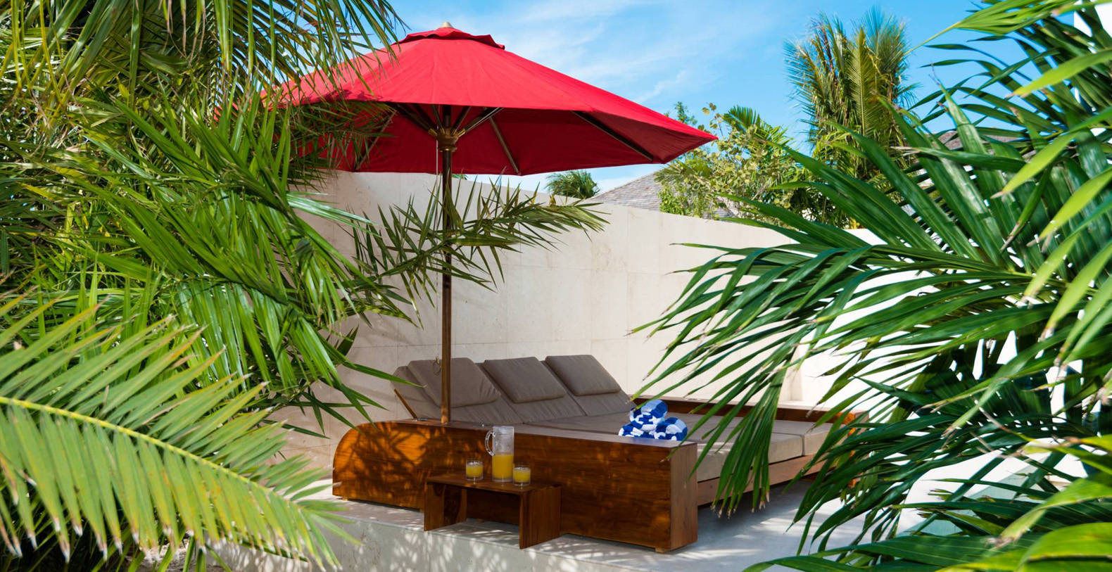 This villa is inviting, but the tropical sun will draw you outside, so make your way to the palm-bordered infinity pool. Sunbathe or relax on the poolside lounge under the large umbrella.