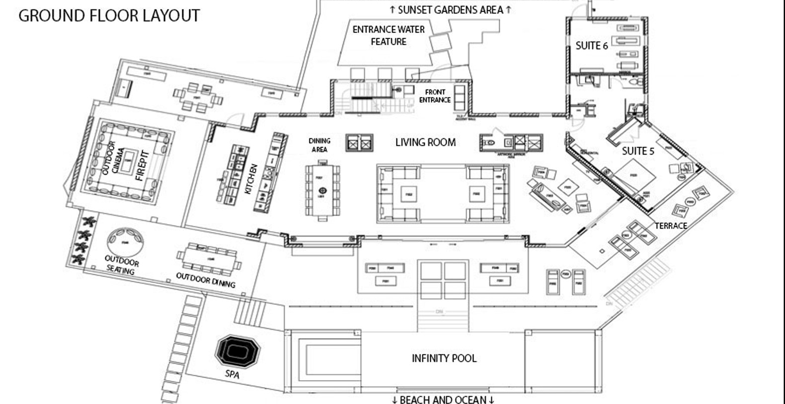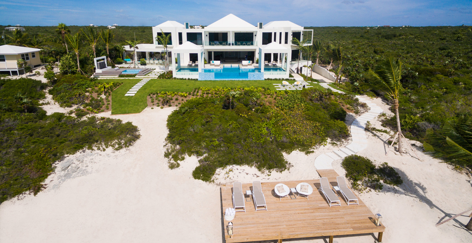 Tucked behind the pristine sand dunes of Long Bay Beach, Triton Luxury Villa has set a new standard for luxury in the Turks & Caicos. The estate occupies over 2 acres of lush landscape and 10,000sq feet of lavish beachfront living space. Triton includes 7 bedrooms, an outdoor movie theater with fire pit, hot tub, 2 pools, private tennis and boccie ball courts, villa butler, one of the nicest beach- fronts on Long Bay and endless unobstructed views of the world famous turquoise waters of the Turks and Caicos Island.