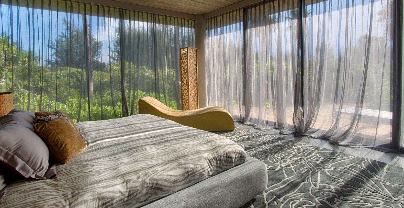 Sheer comfort and privacy characterize the four minimalist bedrooms suites.